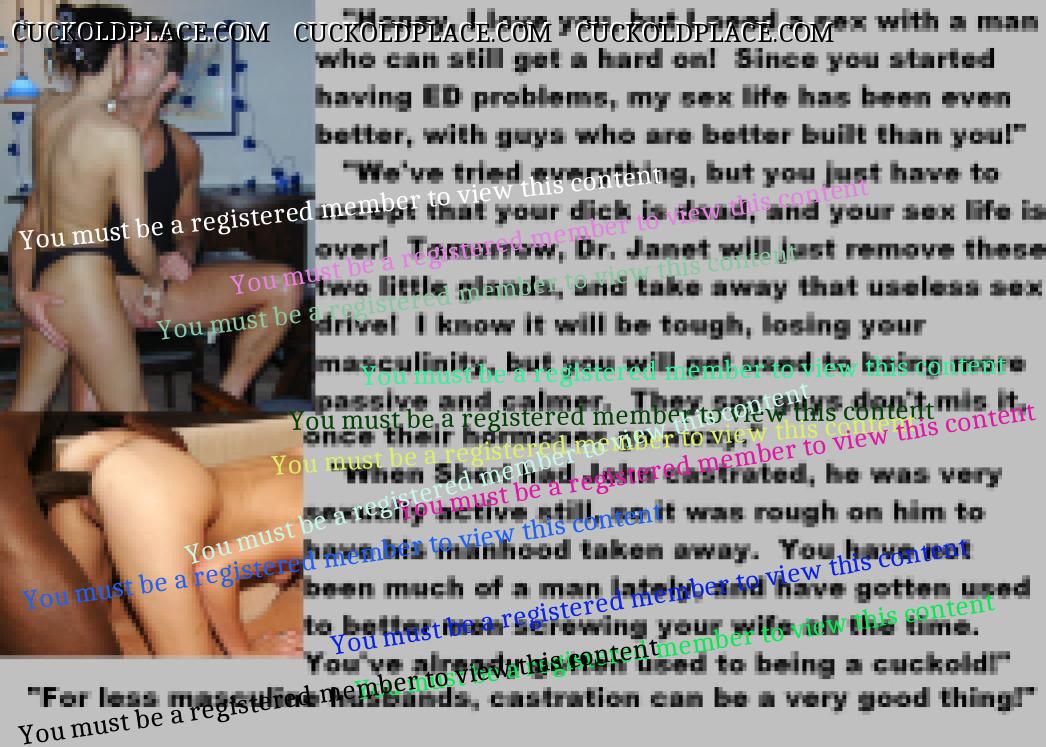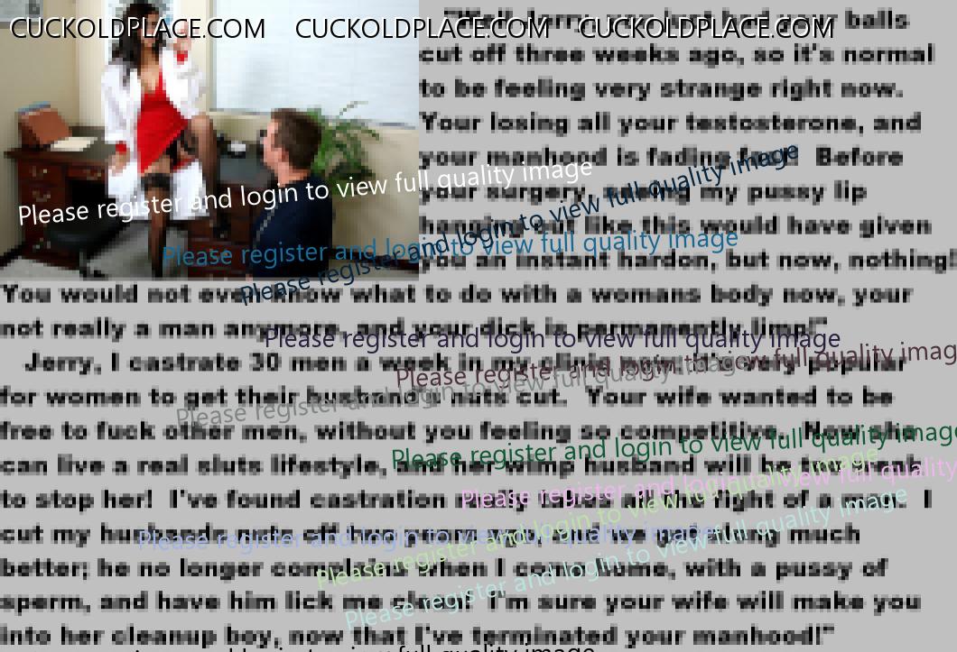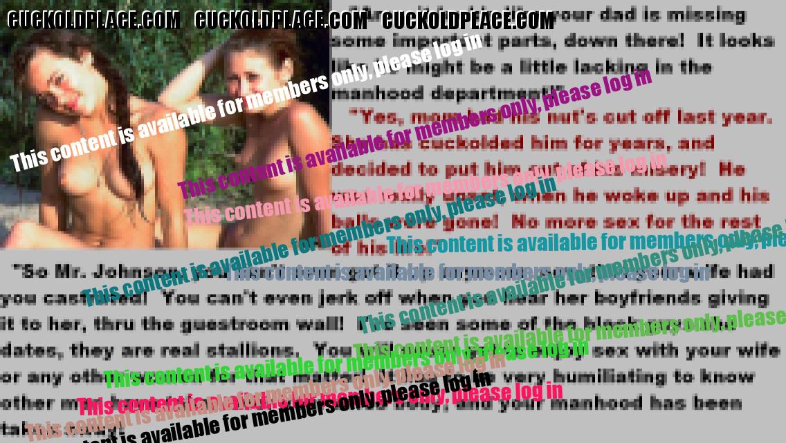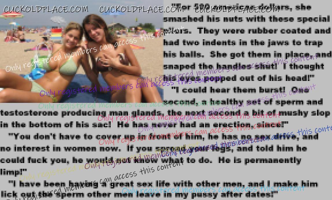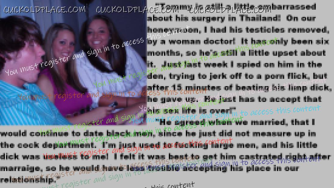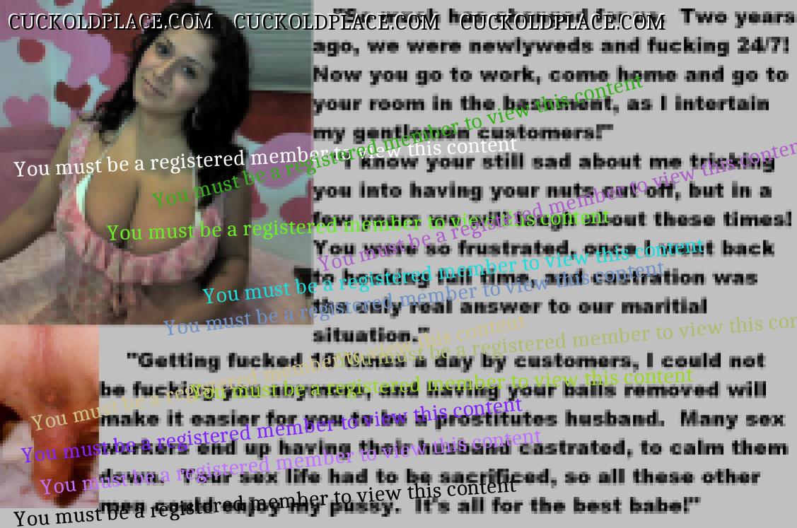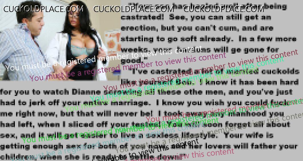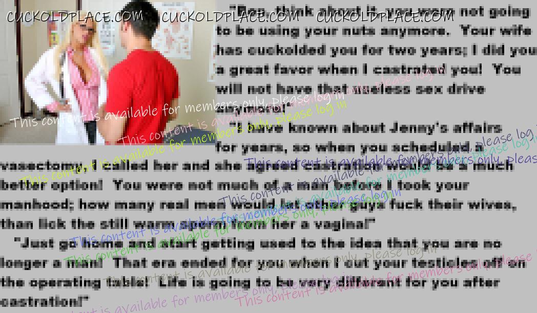 . I have to say CC that there are times when this threads themes, subjects and ideas just swirl around inside my head. It's so considerate of these girls to just retire you and take away all the pressure of sexual competition that we all know you were going to loose anyway..... If you think about it, it's really an act of mercy; to put you out of your pain, don't you think? .  There are few things in this world as sweet as the gelded husband.
