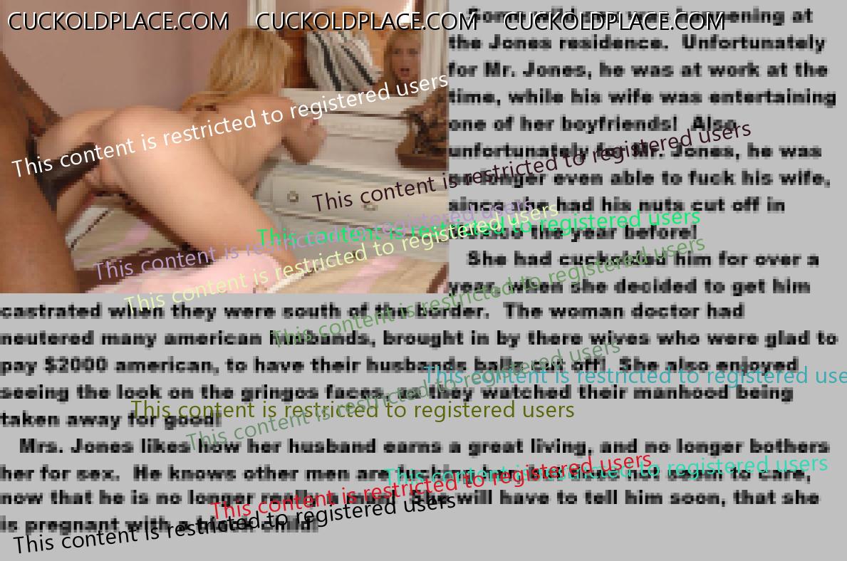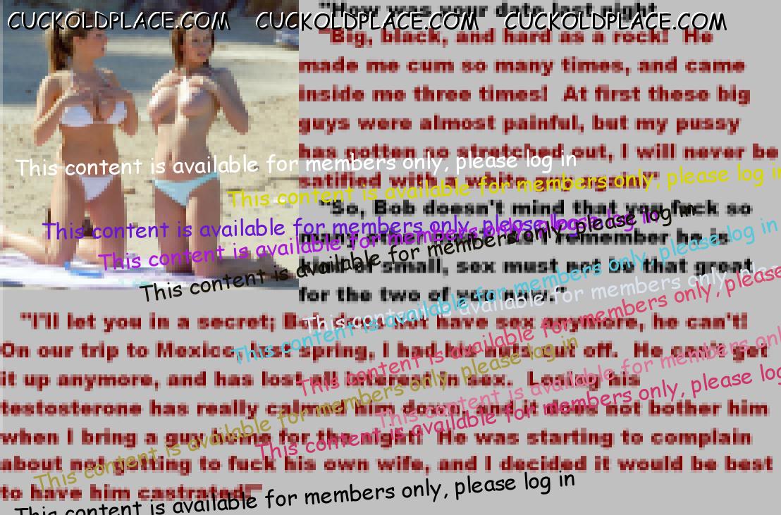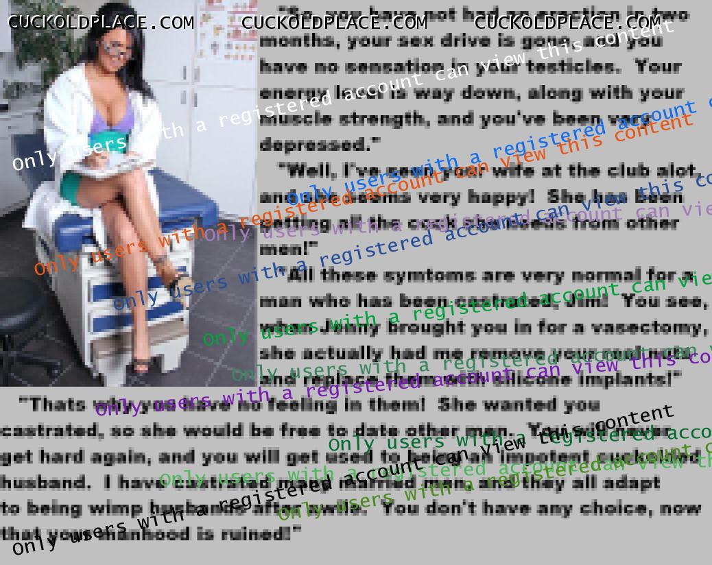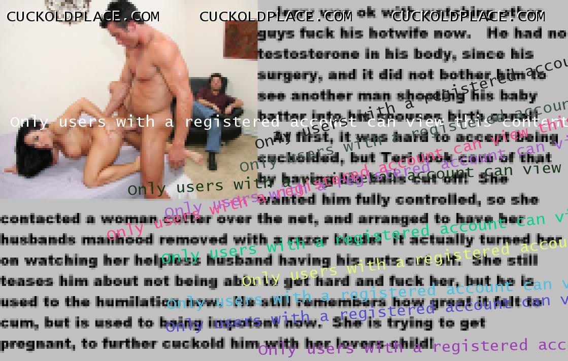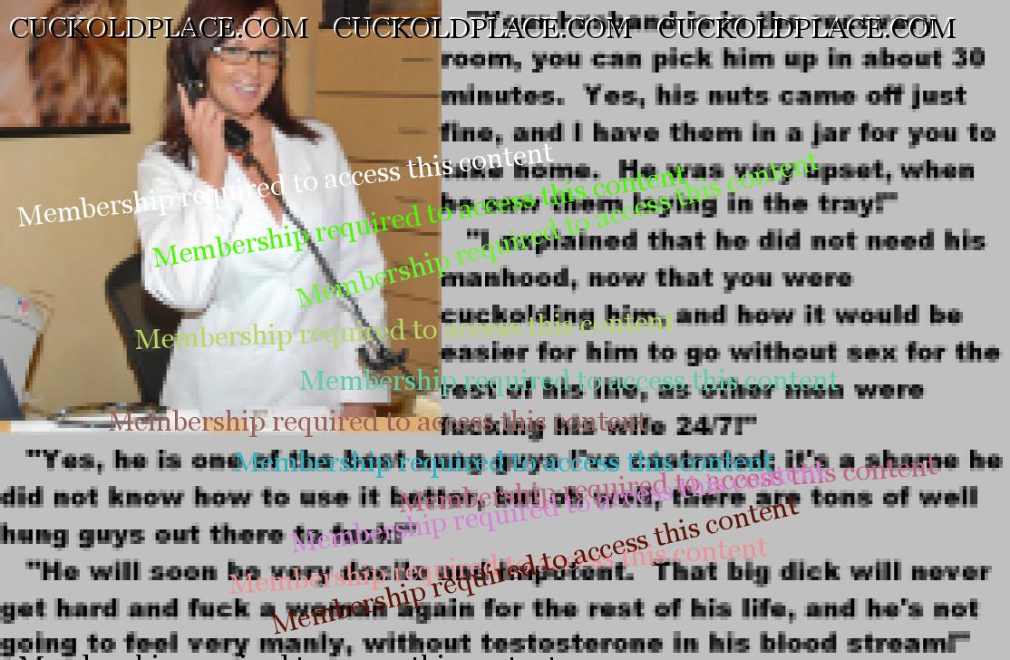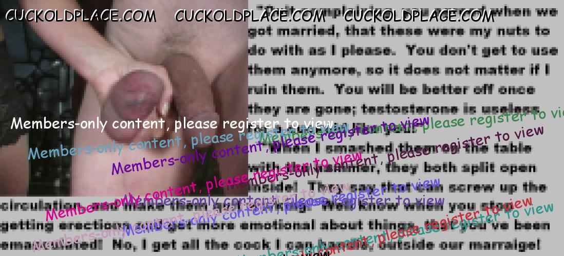 . I have to say CC that there are times when this threads themes, subjects and ideas just swirl around inside my head. It's so considerate of these girls to just retire you and take away all the pressure of sexual competition that we all know you were going to loose anyway..... If you think about it, it's really an act of mercy; to put you out of your pain, don't you think? .  There are few things in this world as sweet as the gelded husband.