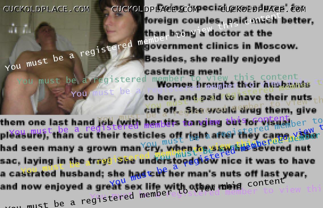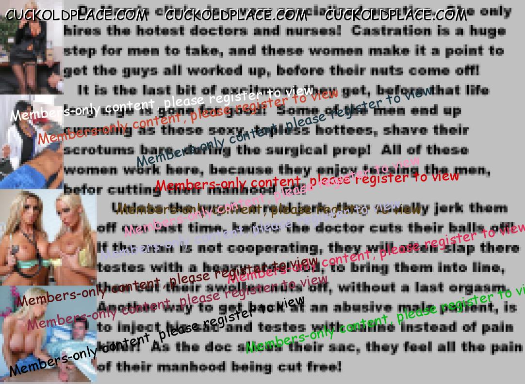 yeah! Using painful technics during castration makes this fantasy even more exiting! Like the picture some pages ago where girl rips guys vas deferens off from the balls. Loking these even ladies in these sadistic acts is such a turn on!