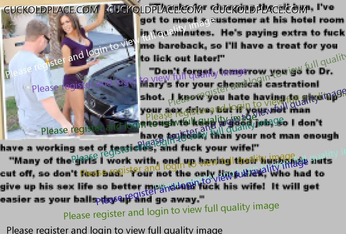 . CC I hope you don't mind that I'm sort of hijacking your thread here for a moment? If you were man enough to satisfy her mad hunger. Her sexual desires. Her need to be a woman. Alas you were just a poser. Not really a man at all. A sort of shadow man but thankfully for the both of you she fixed that problem didn't she? .  You do have a talented tongue. Do your work gelding.