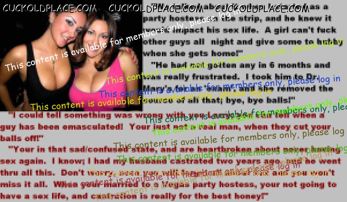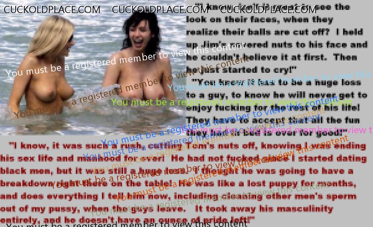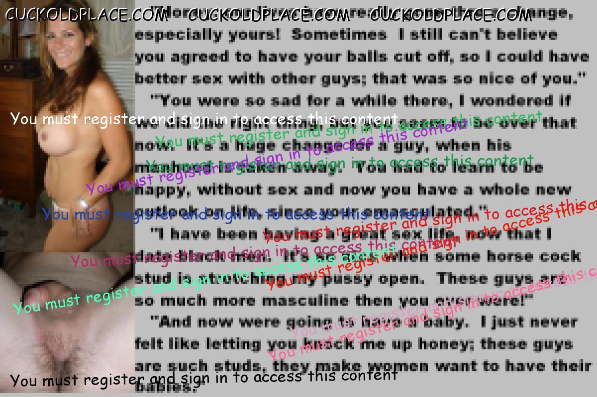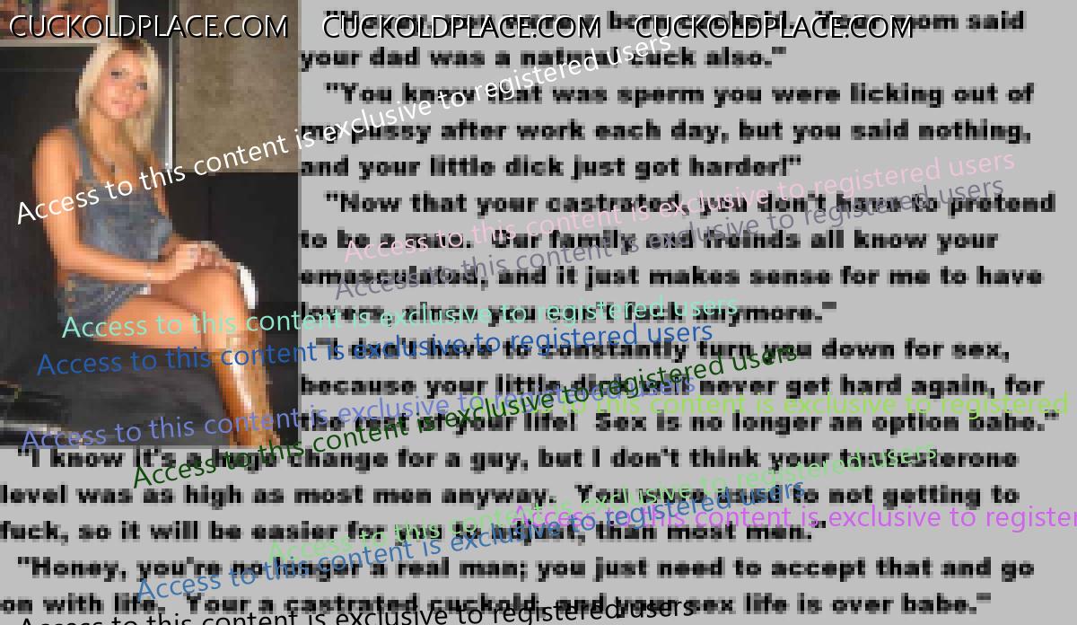 This subject shouldn't arouse me,but strangely it does.What I find so erotic is the wives attitude to it all.They've met the love of their lives and lived in marital bliss....but only for a couple of years.As soon as the boredom sets in,they realise that fidelity is not for them.There are lots of men out there,real men,sexually satisfying men and,quite rightly,they want them.Suddenly their husbands sperm,the reamister they mated,is not required any more.I love the matter-of-fact way they tell them no only this,but if they want to remain married,then all sexual desire must be gotten rid of "for our mutual happiness". Of course,the husbands being cuckolds,they accept castration to please their darling wives.This ultimate sacrifice is proof of their total love and an example to us all.