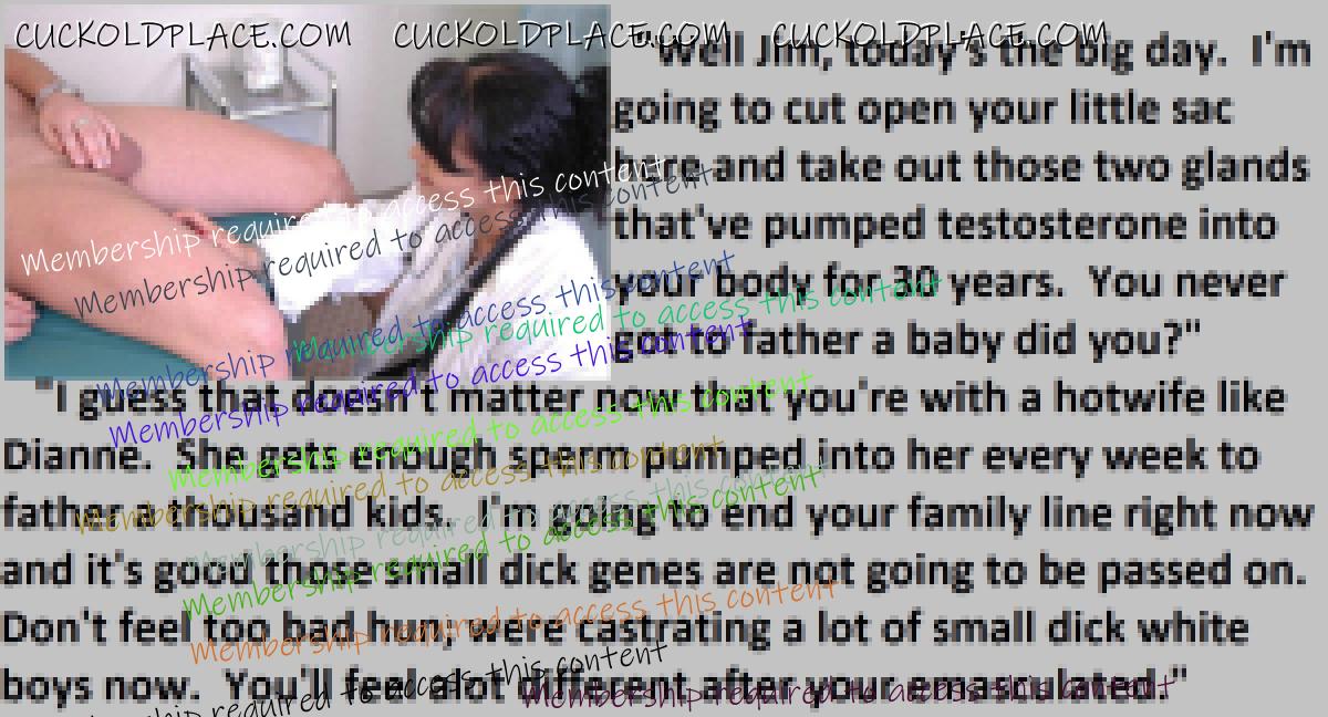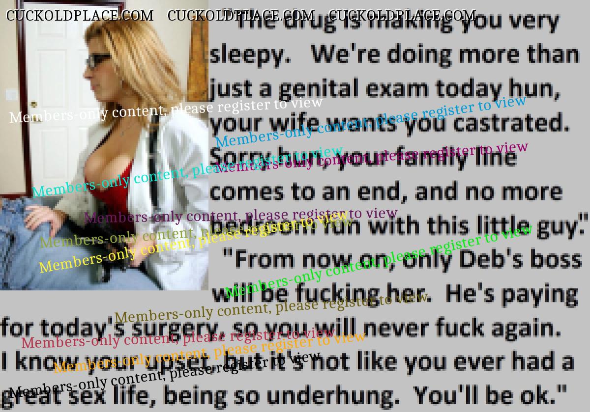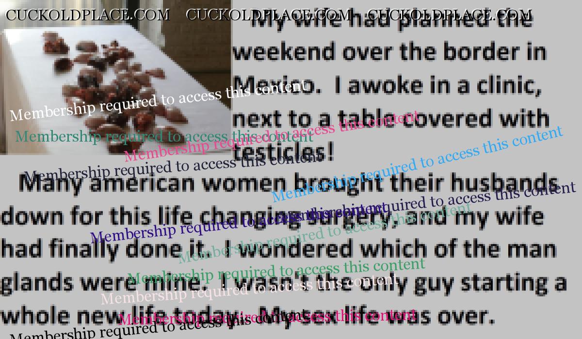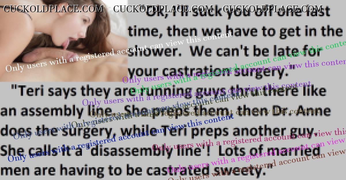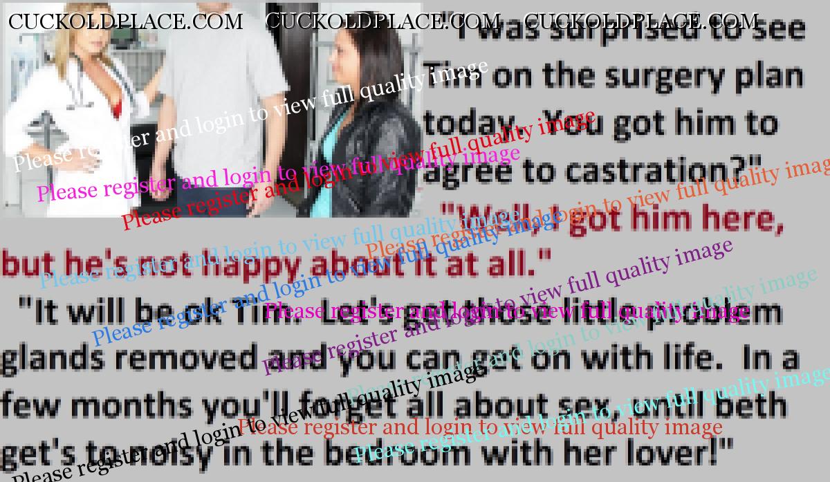 Loved the penectomy ones. Just think all that sperm and passion building up not to mention frustration as big strong viril men fill your wife full of their seed. OH HELL YES!!! More of those please.