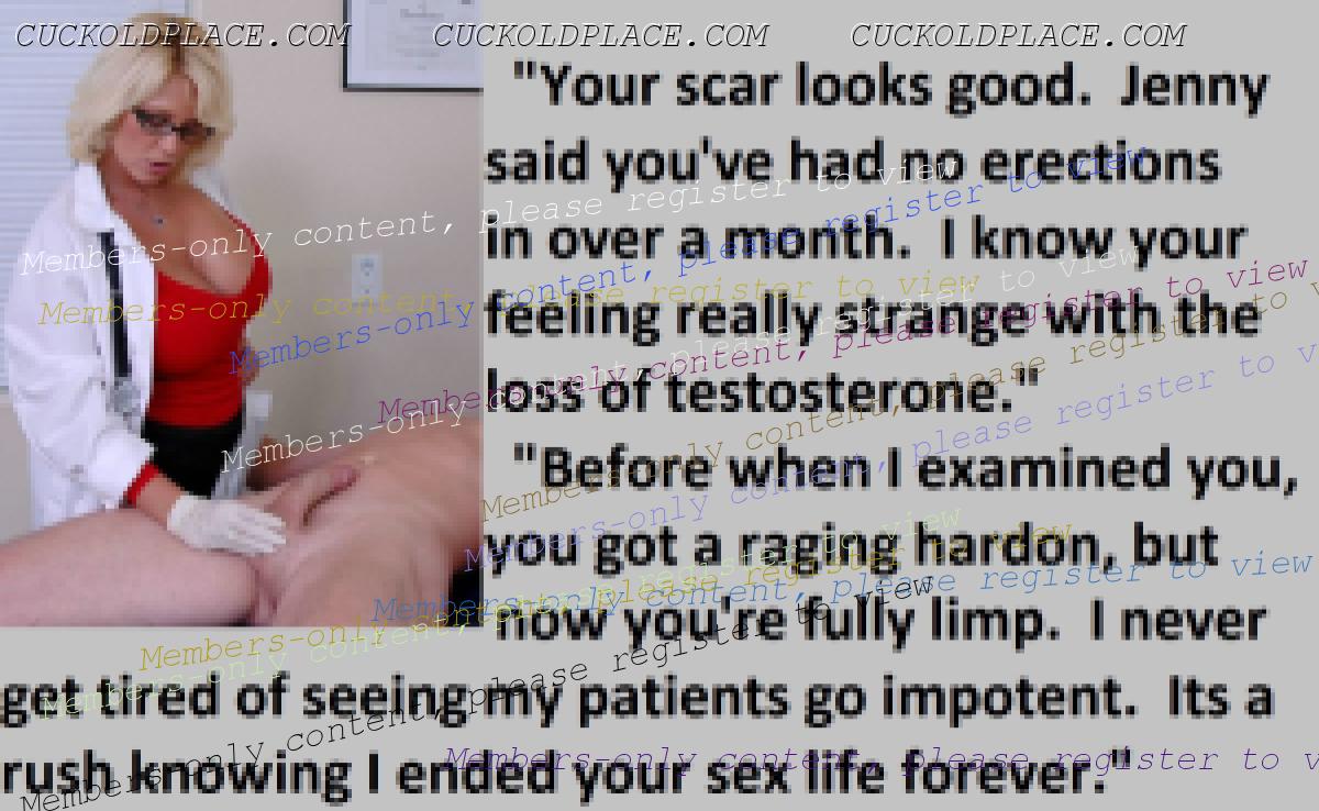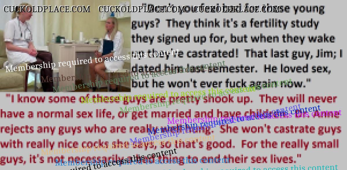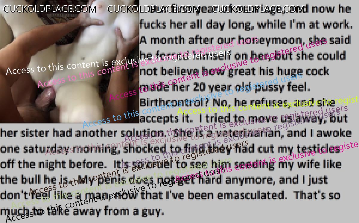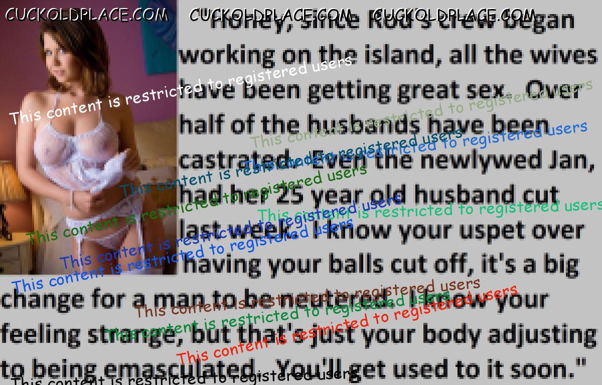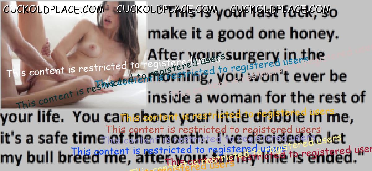 Loved the penectomy ones. Just think all that sperm and passion building up not to mention frustration as big strong viril men fill your wife full of their seed. OH HELL YES!!! More of those please.