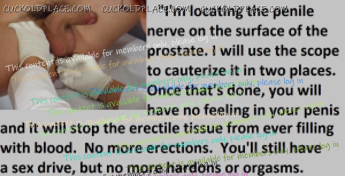 It would be agonizing for a guy to lose his penis, but still have a raging sex drive. I think most cuckolds have a slightly lighter sex drive then most guys, but still. I know when I was sexually active, it would have been maddening. Then your wife would have no choice but to relax with other men for cock.