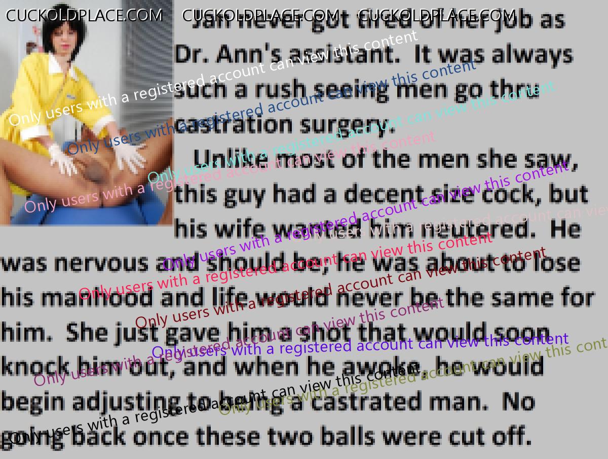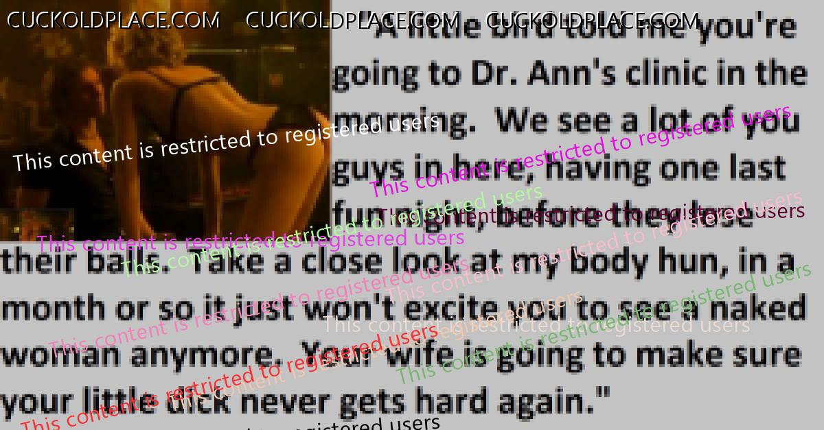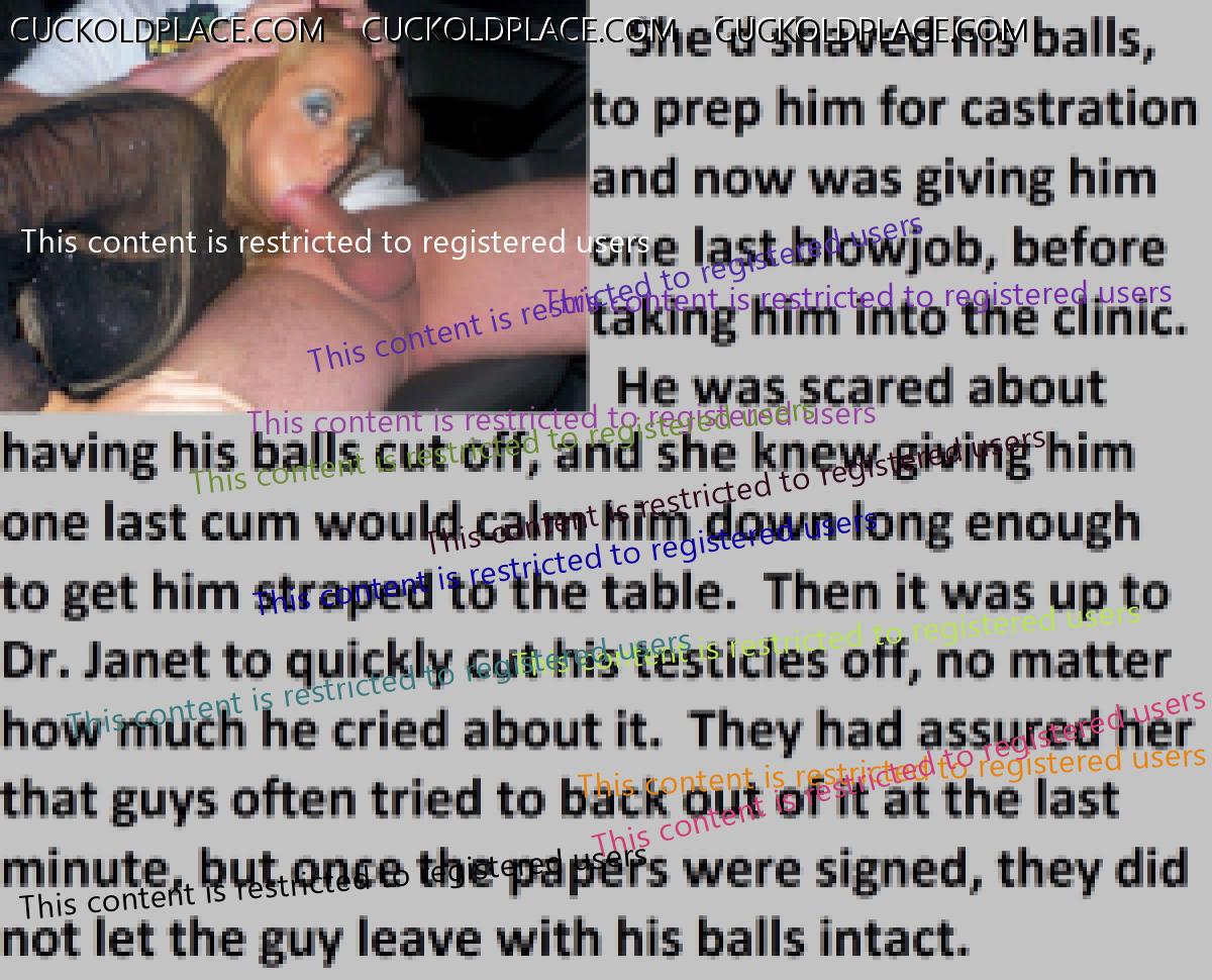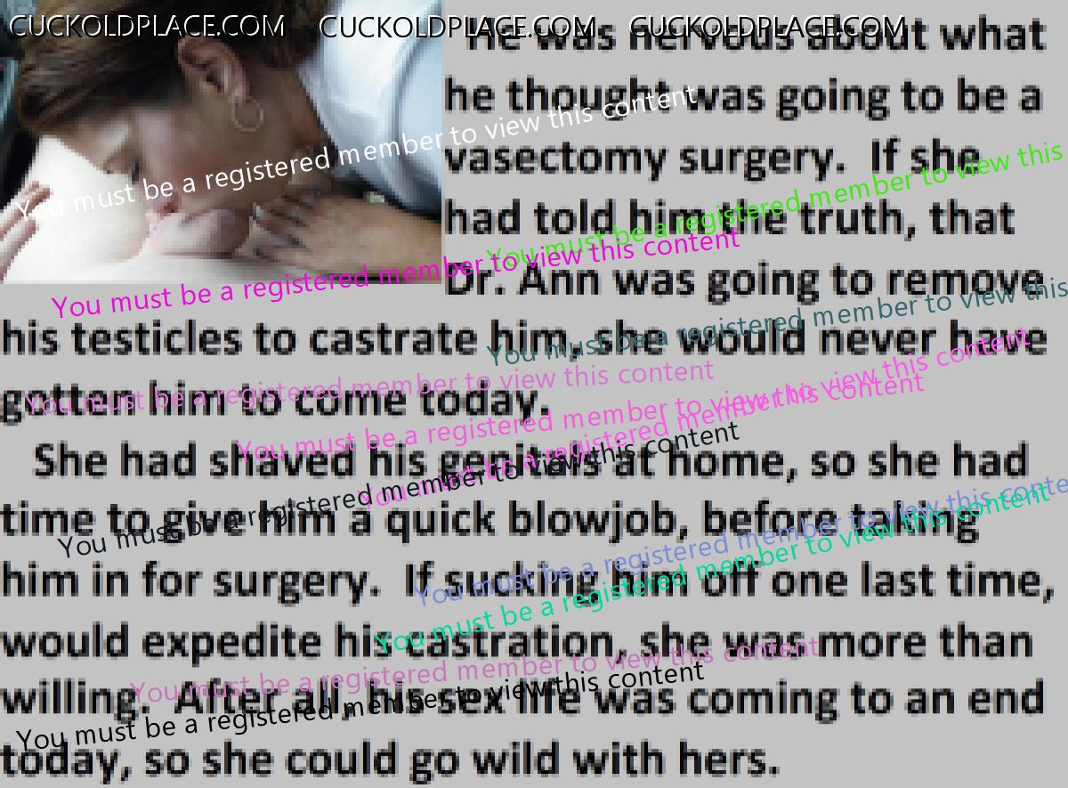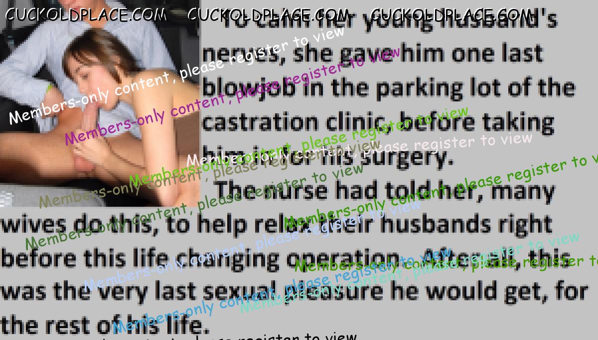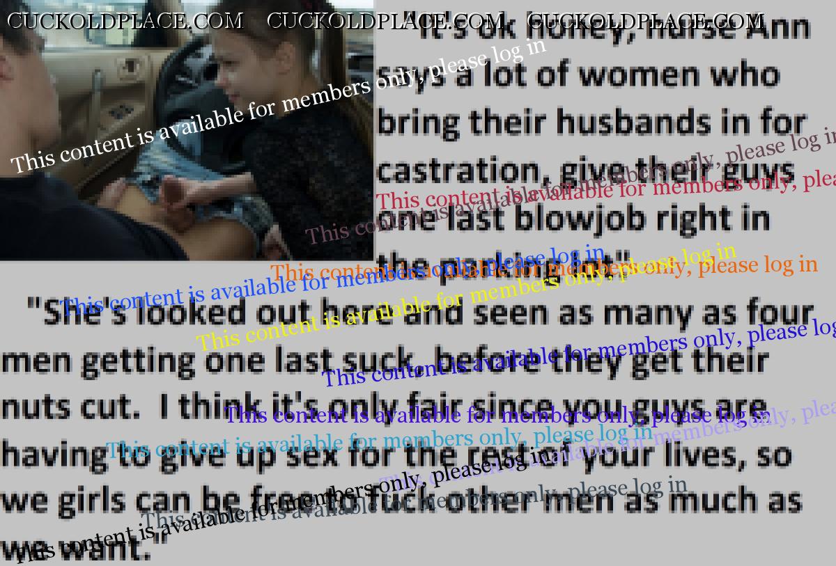 A common scene in the castration clinic's parking lot. Wives helping to calm their nervous husbands with one last blowjob, before their surgery.