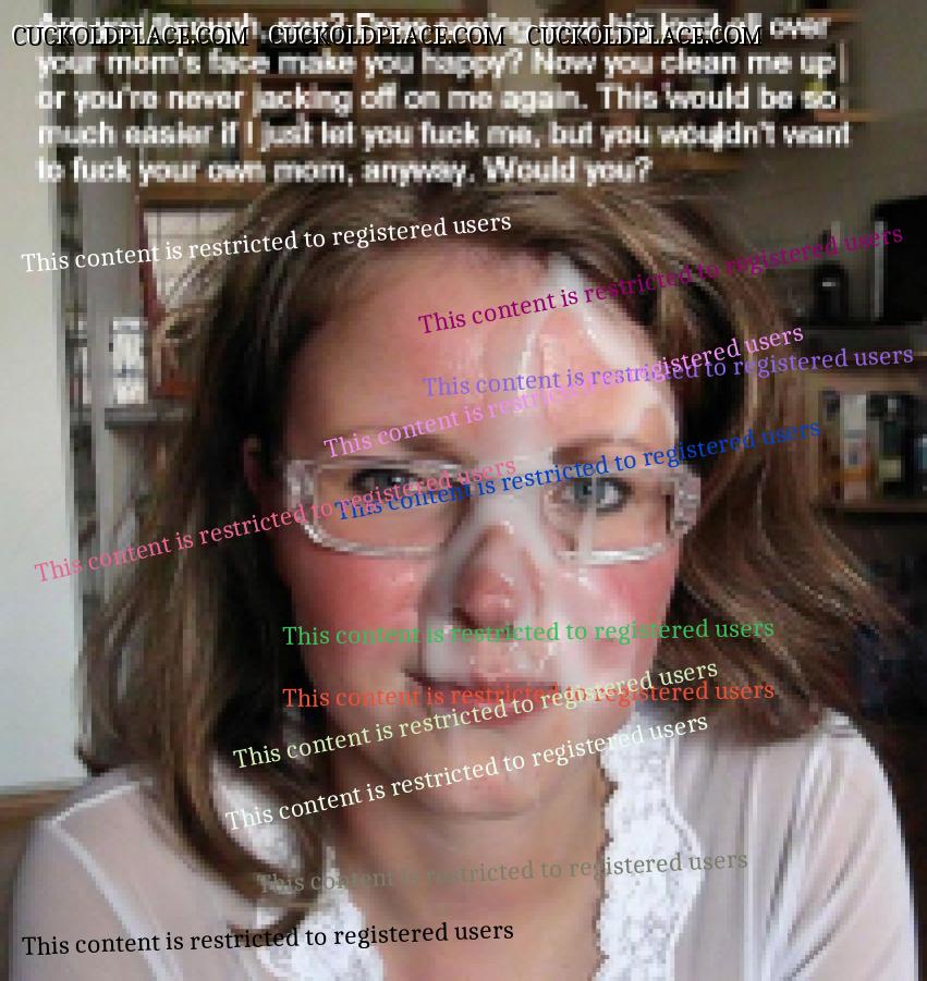 Are you through, mister? Does seeing your big load all over your mom's face make you happy? Now you clean me up or you're never jacking off on me again. This would be so much easier if I just let you fuck me, but you wouldn't want to fuck your own mom, anyway.