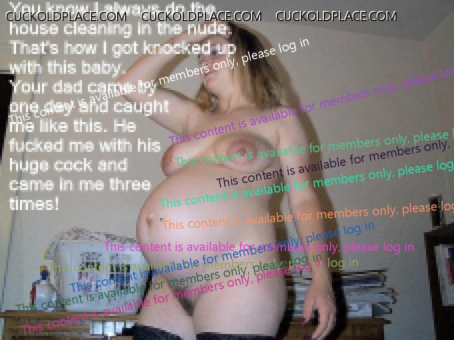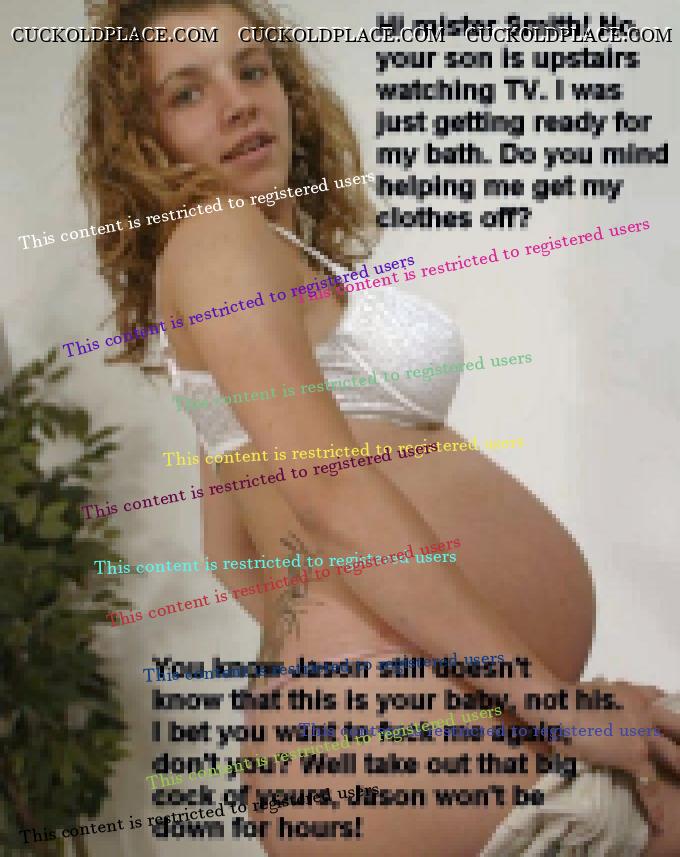 She is pregannt with her man-in-law's baby and now she is going to let him fuck her again while her hubby (his mister) watches TV upstairs!