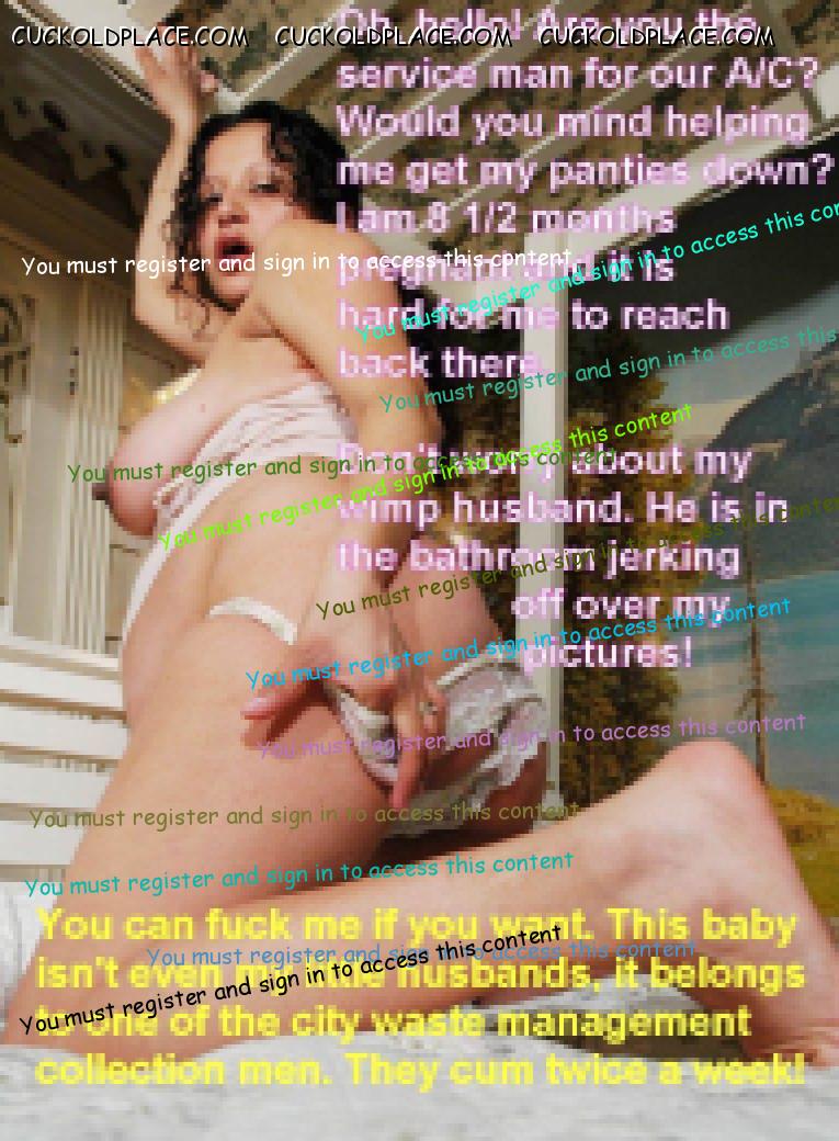 This slut, pregnant wife needs the A/C service man to help her get her panties down.