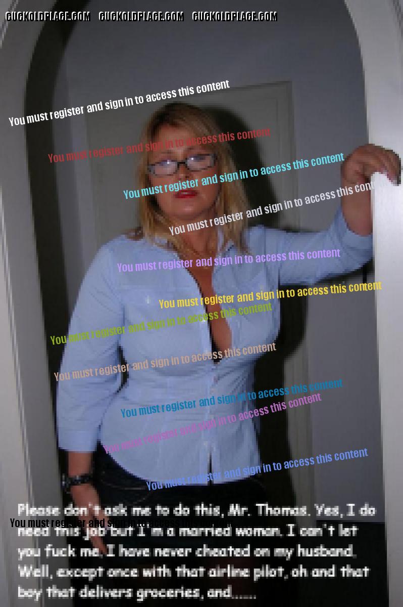Please don't ask me to do this, Mr. Thomas. Yes, I do need this job but I'm a married woman. I can't let you fuck me. I have never cheated on my husband.Well, except once with that airline pilot.....