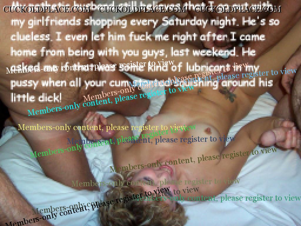 My pathetic husband still believes that I go out with my girlfriends shopping every Saturday night! He is so clueless! I even let him fuck me last weekend, after coming home from being with you guys.