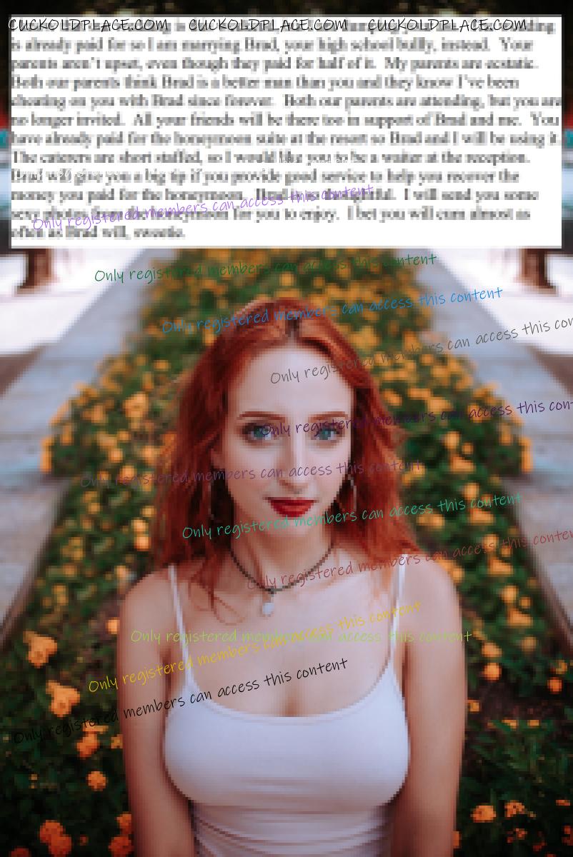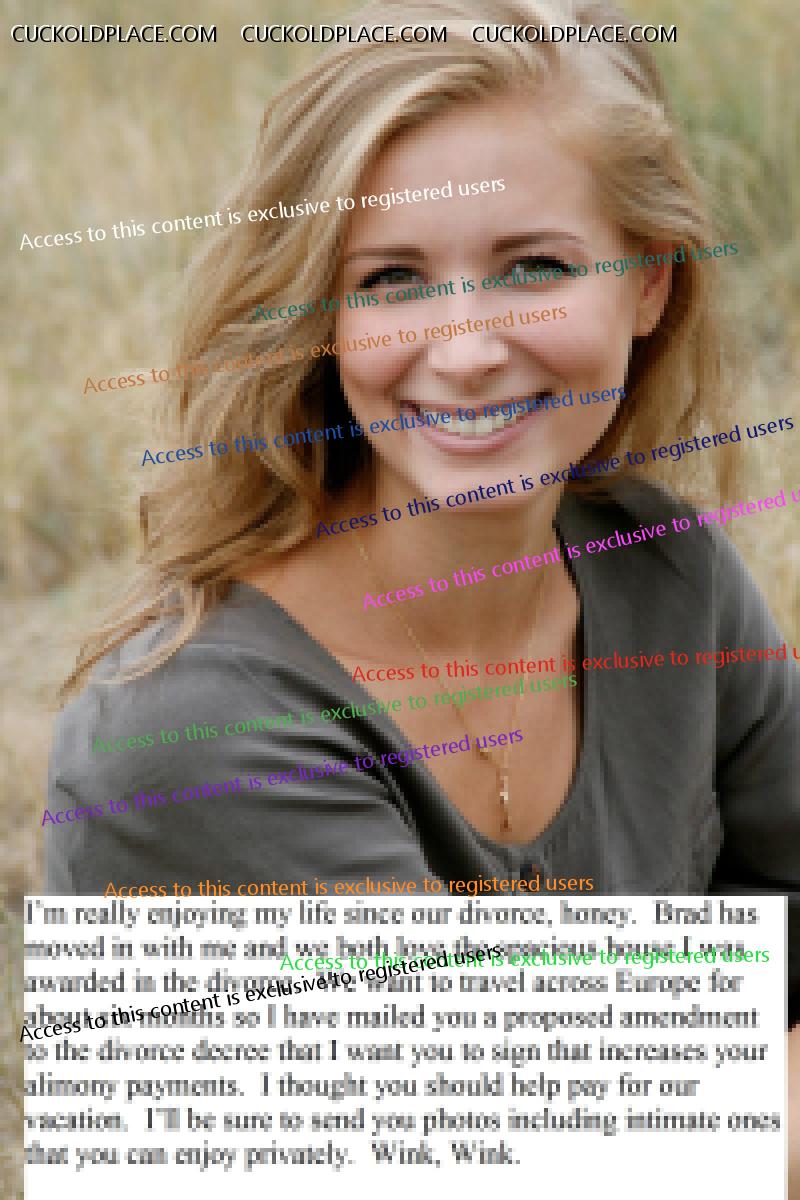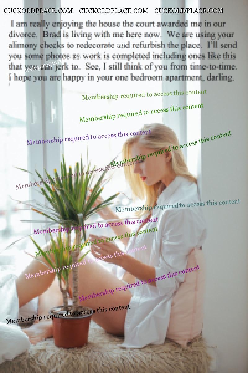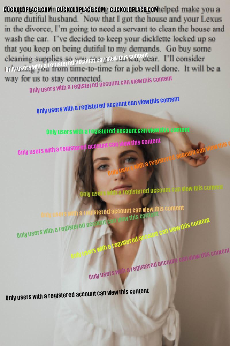 Omega236: I can't explain why, but the idea of being married to a nice, wholesome, and beautiful woman who becomes cruel when she divorces me is very hot. She takes me for all I have, but I still want her and jerk to her. She takes pleasure in taking what is important to me and knows that I still crave her. I'm her ultimate cuckold because she continues to tease me as she takes my money. Yes, that idea is very hot for me too. . Submissive Cuckold - lives for many years in a female-led marriage with a cuckold lifestyle.