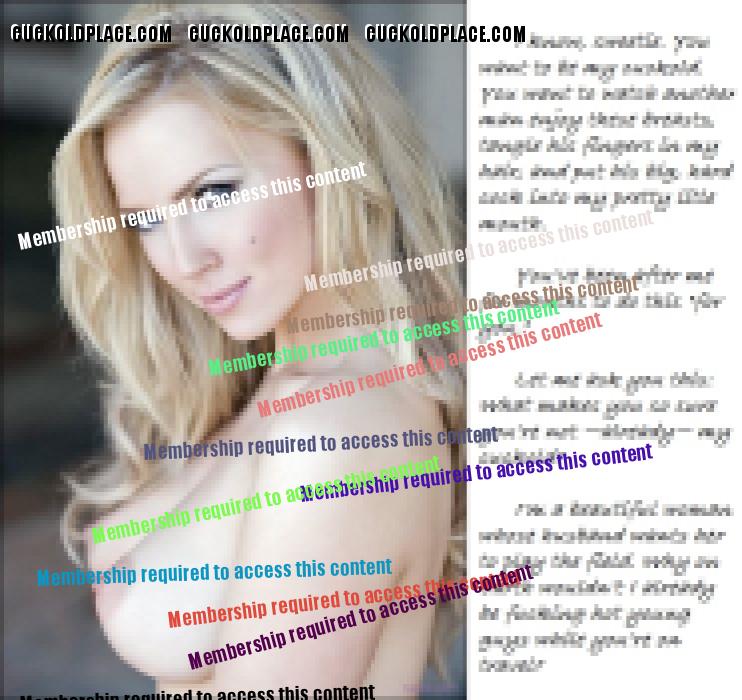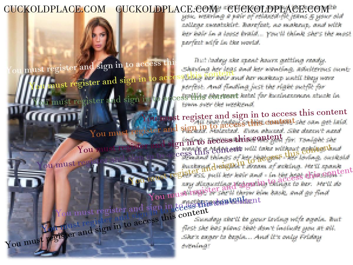 My wife is beautiful at 5', 120#, with gorgeous red hair to the small of her back, and full, perky B+ breasts. She's also a bit submissive, and likes men who know what they want. I'm 5'11", and 170#; fit and former military. I'm an Alpha-Male in virtually every way. I discovered cuckolding through this site: Oddly enough, while serving in Iraq! The net-nanny software prevented most porn from getting through, but the algorithms hadn't yet picked-up on the syntax or vocabulary of cuckoldry, so this site was accessible.