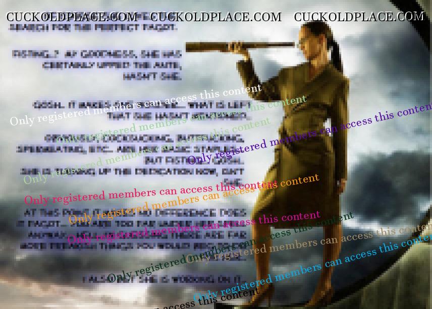 . To watch the scene. To see it come over him. Power, the dominance, the arrogance. To see him grab you, shoving you down, bending you to your presentation. Watching his taking you, his breaking your manhood. Another fucked bitch boy. Then turning to me with that cock fat and hard. that arrogant cock bobbing as it comes for me and my soaking wet sex.... .  To ride that triumphant cock to orgasm after orgasm.