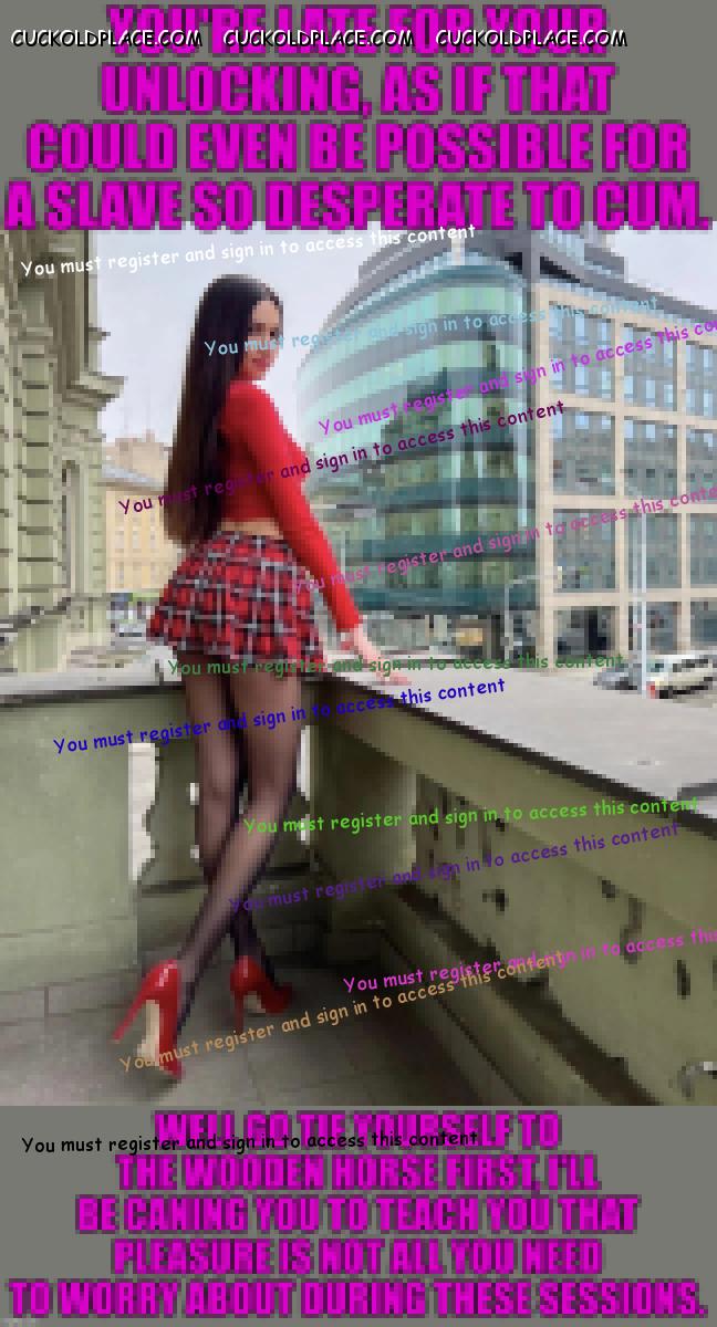 CuckoldPlace.com / Cuckold Captions / Just become a slave in chastity yesterday and very excited |