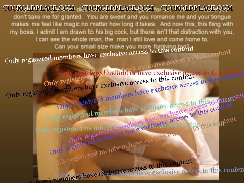 So here is my latest situation. My wife and I are doing good, I think, no real worries that our marriage might be in trouble. We have talked a couple times now about her fling, well, one night stand. It has been so "mature" or grown up, almost clinical. It happened. She feels awkward and uncertain about the experience. I'm glad she told me. I am understanding and comforting. What is missing is bringing her experience, the whole subject, back into our sex life/pillow talk. What are we afraid of? Why don't we talk about it sexually, laugh about it, see if any more fantasies are still there? In the meantime, I think I have decided hot wife/cuckold stuff still fascinates me/excite me. There have been some change, now that we are in the real world, like less curiosity about humiiation themes or domination. But scenarios like loving couple, bi couple, size teasig still feel very hot. So, I think I will still be checking in here, and maybe still doing caps, at least some dealing with themes that seem more connected to what is actually happening with us. Thank you again for all the patience and advice. Here is one for the road... xxx