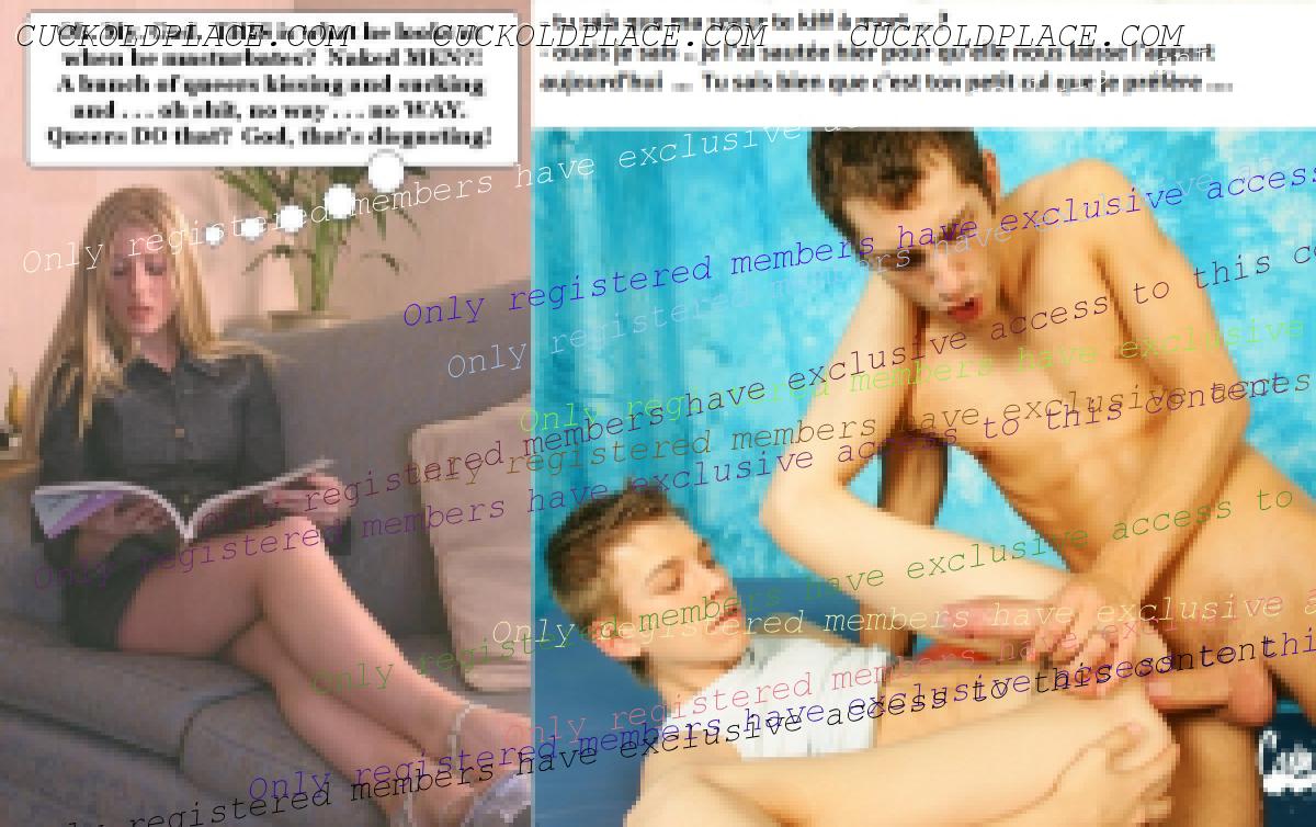 Mon cher Zèbre, tu noteras la double interprétation possible de ces pics ... on peut supposer que les scenes de droite mistert tout simplement les images que voit la fille ... mais on peut aussi penser que la nana qui a trouvé la revue gay est en fait la permisterne dont les mecs parlent et qu'ils ne mistert donc pas dans la revue mais dans la réalité ... étonnant non