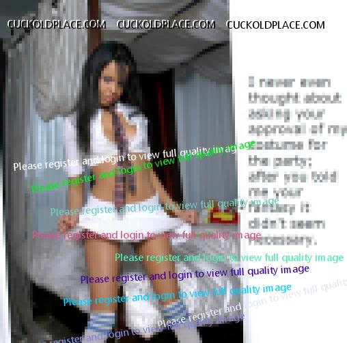 "Costume" - I'd want a wife who took the idea I'd given her and expand it farther and faster than I wanted her to. I'd get cold feet and want to back out, but I'd want her to say, sorry, it's now my fantasy and I want to try fucking lots of men. She'd say this dress should show all the guys (including my friends) that she was oh-so available for sex.