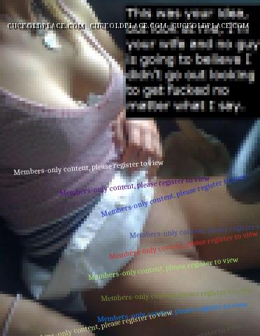 Later, when I meet him at a party, wife by my side, her lover's smirk will tell me he thinks I have no clue he's fucking my wife. I know in a few minutes she'll take her leave to "talk to girlfriends" and really she's meeting him in a bathroom or bedroom to fill her with cum. Then she'll come out and stand next to me as the "good wife" with his cum running down her thighs. In fact, I delight in her adultery and she'll take me to the spot where they fucked and pull my face into her dirty pussy to lick her clean. I'd love every minute of it and want her to do it more, much more.