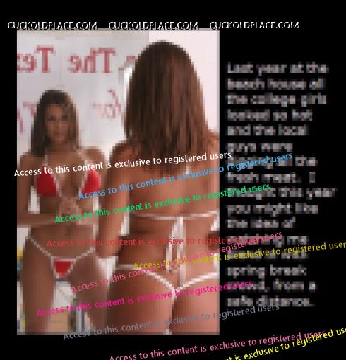 I'd want her to say that in the future she might or might not tell me of her adventures but that I couldn't even look at other women. I'd want her to say she loved the secrecy and pleasure of hiding her adultery from me because she knew I ached to lick her clean and hear the dirty details.