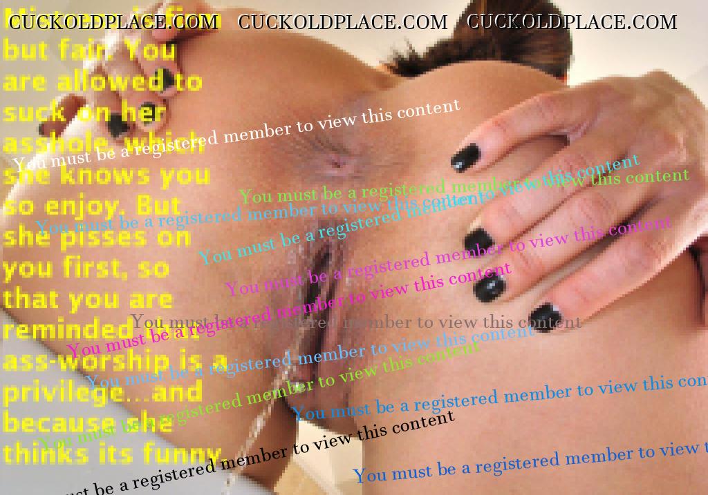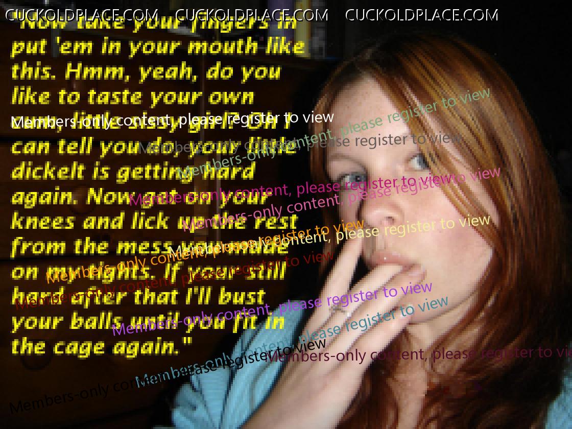 nippyc Thank a lot. That's a big compliment. I think you'll continiously like my work, we share the fetish tinycock Sounds like you have found yourself an awesome wife. Good for you! Thanks for the feedback. PS: Ja, ich bin in Deutschland. Hab auch schon im deutschen Cuckoldplace Forum Caps gepostet. Leider bekommt man dort keinerlei Antworten, ausser "mehr!!", weshalb ich meinen eigenen Thread aufgemacht habe und englische Caps mache Razor Thanks. I just loved the pic! useful male Glad you liked it. There will be coming up more like this. biginfl Thank you for you feedback. Tongue in Cheek Thank you for your suggestions. Here they are: