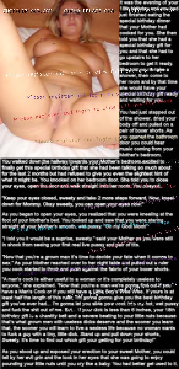 What if your family knew or found out that you had a baby dick? How humiliating could that be? I have been working on a few captions that indulge this fantasy. Here are the first 4.  A Man's 18th B-Day Gift From Mom