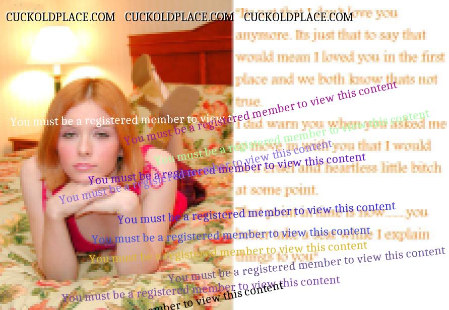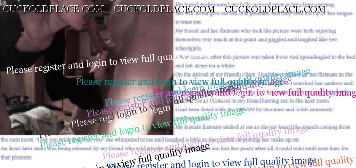 The party was probably the best one yet. There was a new girl there called Stephanie who wanted to meet me so much. When my hostess friend told her about me she got real excited about having a cuck to torment. She is absolutely stunning too. It was the most agony I have ever experienced as there were some different things added to the party to make it more uncomfortable for me. Not counting the CB that was making me ache. My hostess pal had bought some new red, very thin fibre sheets to go under the matress of the bed. It covered the bed completely so no-one could see under. But on one side of the bed is a large window with thin curtains, closed........but they let light through. It means that I can see out from under bed through the thin red sheet. My friend had placed on that side of the room a large full length mirror. For the first time......................I was able to catch glimpses of the girls as they enjoyed themselves above me. The mirror had been placed there in such a way.........that the girls could quite easily move out of my line of vision and tease me by not letting me see anything. Stephanie was just incredible because she had obviously found out just the right place to get her guests to lie down....................I looked into the mirror as she slowly and gently gave someone a blow job. Every so often she smiled into the mirror knowing I would be watching. She even got fucked doggy so she could kneel and smile down at me. I called Julia in the evening and told her everything and she had a great laugh. I have been told to come to her place today and she sent me another picture for you guys to look at. She is being very cruel....this is the worst I have ever felt as a cuck and its testing me real good. Anyway........Julias captioned picture speaks for itself. Do I need a beer right now. stevensmiles