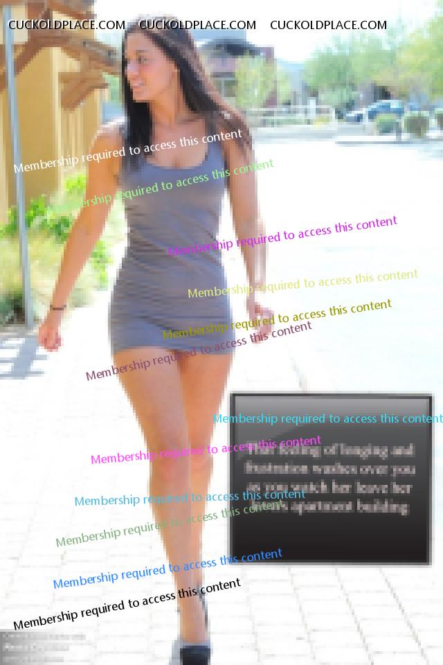 It's part of her cuckold offense to have you walk behind her as she goes to spend the weekend with her lover. You obediently carry her bags to the hotel they are staying in. As she and her lover laugh and embrace in the room, you unpack and place her clothes and sexy underwear in the drawers. You glance longingly at her as she begins to undress and catch her cruel smile playing on her lips when she dismisses you. You close the door softly when you leave and sadly walk to the elevator listening to her sweet giggle. stevensmiles