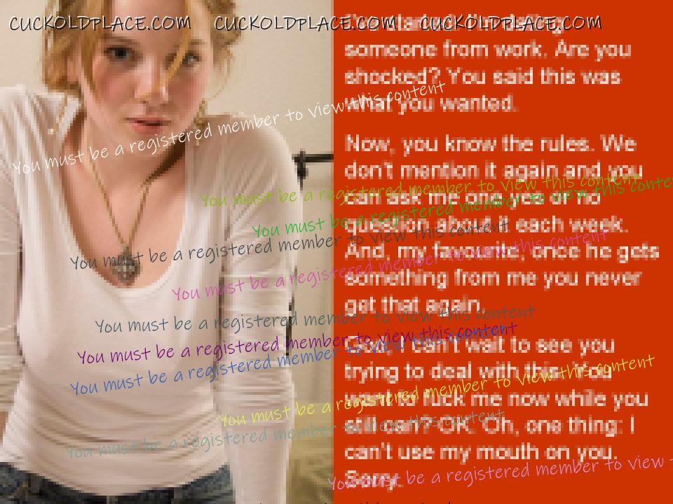 Quoting: sever bah,,, i don't like this kind of cuck, the real title of this threath is: "the end of cuckolding lifestyle" tih is not cuckolding. Well, I'm sorry you don't like these captions. Luckily it seems that many others do. Perhaps you could start a thread of your own captions and share them with people. Of course, remember that doing that takes a bit of time and effort. I don't know how you come to the conclusion that this is not cuckolding. Perhaps it is not what you regard as cuckolding but, you will accept, those two things are not the same. And, incidentally, the real title of the thread is not "the end of cuckolding lifestyle". For one thing, that would be grammatically incorrect. Thank you for taking the time to respond. If you decide to post captions let me know. Maybe I could give you some help with your spelling. Paul.