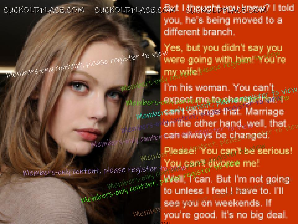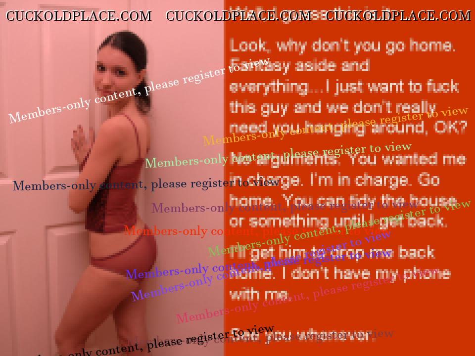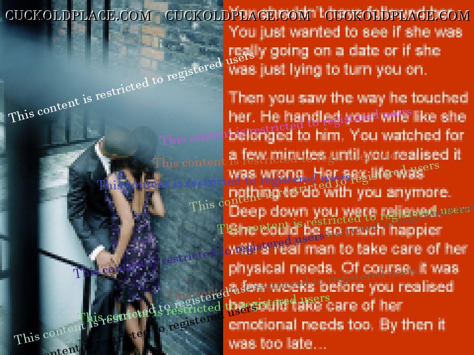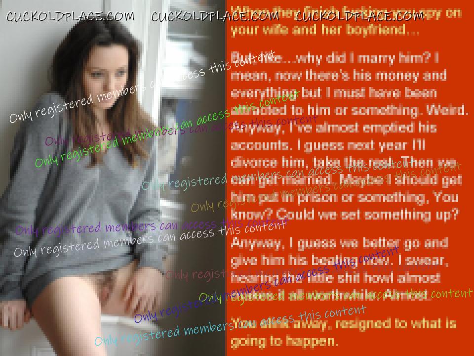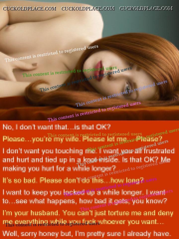 Your ability to cut to the very heart of cuckold fantasies is remarkable. Anyone can make a caption about compelled cocksucking, but the way you frame it in Almost Ready, putting the emphasis on the irreversible change in how a wife will view the cuck really touches the nerve. Or consider Really Hurt, which could be a run-of-the mill "they're kissing" caption, but is escalated to so much more by you sly inclusion of the last line "it's all your fault." The complicity of the cuckold in his own ruin - in taking the cock in his mouth when he knows it tears something that can never be repaired, in encouraging her to fall in love when it knows it will end in his own tears - that is the stuff of dark genius, maestro!