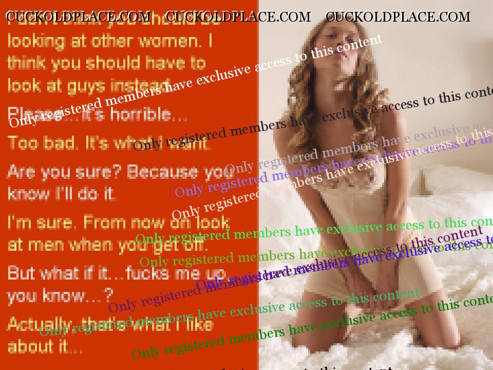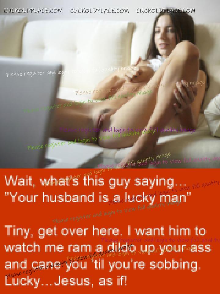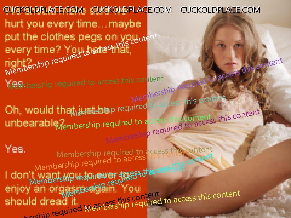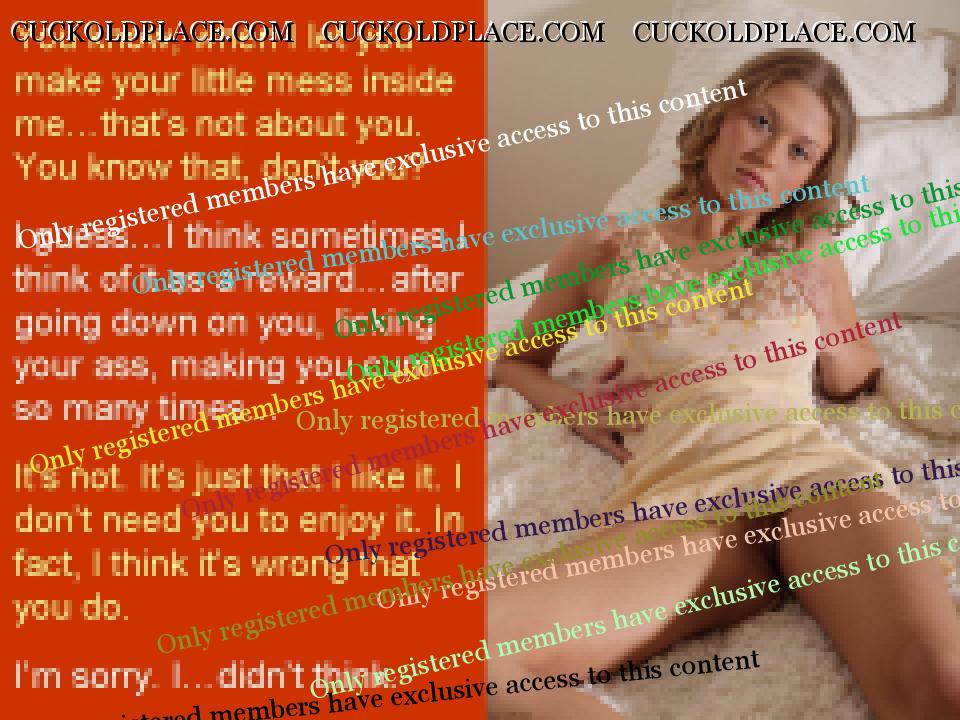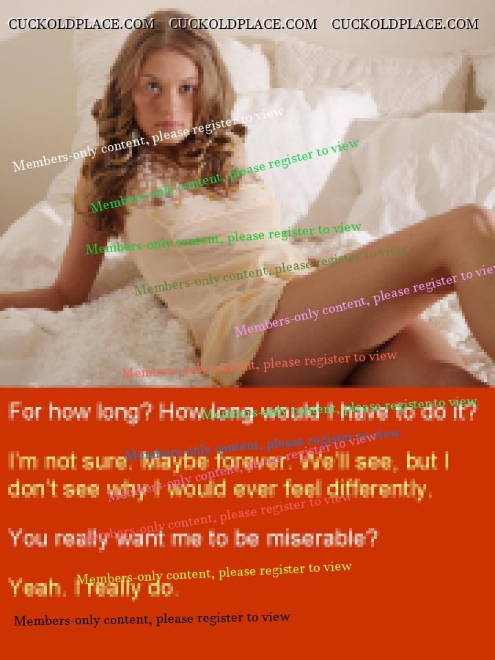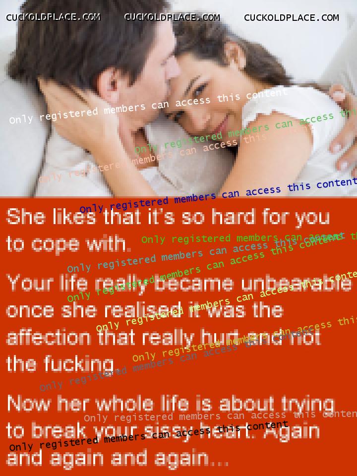 Anne and I just had sex, or something like it, for around two hours. She let me make my little mess inside her but not before she had me eat her asshole about three times, go down on her about the same and beat me in a way she hasn’t for years. She used the electrical cable on my thigh, maybe ten or fifteen times. I cried afterwards. Then she had me go down on her again, then she beat my ass, harder than ever before. She must have done it around fifteen times, each time pushing me to put my ass in the air again. I was thrashing, begging, crying. I thought I was going to fucking die. Then she said I would only have to do ten more. I thought after five she was going to stop because I was in such a state but she didn’t. Finished all ten. Took me a few minutes to recover. It’s a strange thing having your own wife beat you until you are in tears. I noticed later that my throat was sore. Presumably from screaming. Anne has let me near her about four times in the last week. The first time she didn't let me finish inside her. She made me jerk off into her underwear while she watched. She has started to really get into me licking her asshole and she loves the idea of me being miserable because of her. Seems we are shifting from involving other people back to her hurting me whenever I am with her and having me do things she orders when I'm not. She has told me, again, to look at pictures of men when I cum when she's not there. Because I hate it. That turns her on. I have been doing as she says and showed her some of the stuff I found, and used, on Anna Malice's website. She really, really liked it and loves that I have to use it. A couple of nights ago she beat me for the first time in months (as far as I can remember). She used the cable she always uses. She didn't name a number, said she would just beat me until she came. I had just made her cum from licking her asshole so she said it would take a while. And it did. I counted about 75 but it might have been closer to 80. We are now trying for our first young as I think I said. The last few times we have had sex I have begged her to think about letting her ex be the man, or at least let him fuck her unprotected once. It's crazy but I think I was serious. I don't think she will though. She has promised to think about it this week - even if she would never do it she has promised to give it some thought. She says she finds the idea of it very hot, even though the reality would be crazy. She is seeing her ex for lunch on Saturday. I don’t think she will fuck him but...after a few takes, I don’t know. And I have been begging her to do it. She is starting to get into “fond of writing” and made me a task for the first time today. Only a short one, just as a test. She also made her ex a tumblr with some pictures she thought he would like. She sent me an email taunting me about it. The subject line was, “I bet you wish I liked you this much...” I think things are really moving on, one way or another. Today she pushed my hand away whenever I tried to touch her breasts. I think things are going to get worse for me every time. I made a series of captions about this which are based on conversations Anne and I have had over the past few days. They are below.