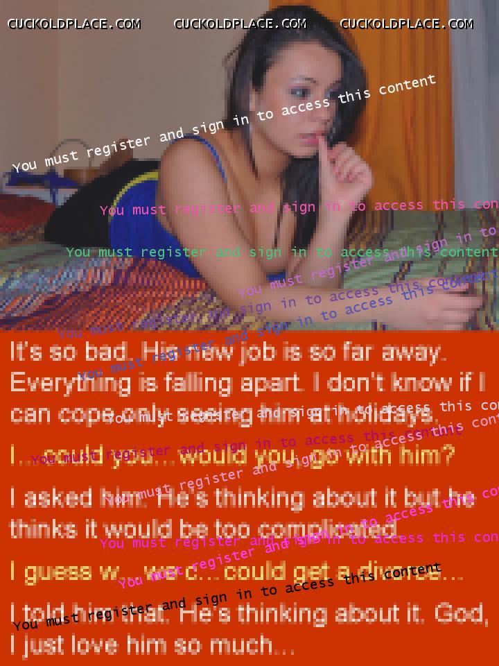 Well, here's a surprise. After months of it being decided that Anne wouldn't be relaxing with anyone else and that we would try and have a more normal sex life things seem to be changed again. She came back from her lunch with her ex on Wednesday very excited and very turned on. She arranged to meet him and stay overnight on Tuesday next week. This has now been brought forward to this Saturday night. She still wants to have sex with me. She says she thinks that model would work for her - getting to see him without having to give up sex at home. I think this could be the beginning of something regular and permanent. Maybe not as extreme as we had always planned but I'm sure many of you on here know that putting fantasy into practice 24/7 is a lot more complicated than it seems and often a lot less fun than you think. Of course, Saturday might not happen for various reamisters. It wouldn't be the first time things had been cancelled at the last moment but I have never seen her so into this. Really starting to lead things. We are going on holiday soon and I offered to get the names on the tickets changed so she could go with him. She said no but later it turned out that he wouldn't have been able to get the time off work. I asked her if this was the reamister she said no and she said it was. It is difficult. Sitting with your wife while she is texting the man she will be meeting at the weekend, seeing how excited she is getting etc. but I guess dealing with that is something we just have to do. I will keep everyone updated on what happens. Paul. Oh, and here are four more...  Affection
