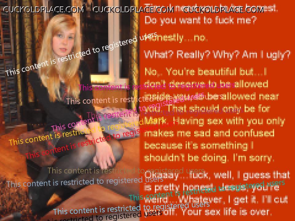 OK, I'm going to give an update on what is happening. Sometimes I think what we do probably sounds unbelievable to some people. As always, this is 100% real. I have never posted anything untrue to this site in all the years I have been here. That's why everything happens so slowly. In real life this kind of thing takes a long time and we have had (and are still having) many false starts, breaks and steps backwards. Anne has left to meet Mark for lunch. We talked and she is adamant she isn't going to stay over but I'm not sure she will be coming home tonight. She isn't on any birth control now as we are trying for a baby. There is almost zero chance of her wearing condoms (no matter what she says) because she hates them and they irritate her. That means it would be a huge risk and she understands that but I think she might find it too hot to resist. I know I should have stopped her going but she has to see him sometime and so I guess I have to trust her to do what's best. Also, deep down I think I know that this should all be her decision. I think Anne is getting into all of this far more this time. The truth is that she is incredibly shy and she finds the pressure of meets and staying over very difficult so we are trying to find a model that works for both of us. I think we are both getting used to the idea now that this is the way it should be. She should get whatever she wants and I should be in agony/miserable/humiliated more or less permanently. I have never experienced anything like this week. The feeling of having your wife beat you until you are howling and sobbing and knowing this time that she isn't going to stop is so intense. The other night after she whipped my thighs with the cable she just held me while I cried like a baby. Not sniffling or a few tears but really howling and shaking. There was no sympathy and she wasn't sorry. There was just silent support and tolerance. And it didn't stop her doing it again later that night. The captions below are from a real conversation we had while she let me inside her the other night. She really said what is in the captions. She came up with the idea herself. We have talked seriously since then and she says she doesn’t really want Mark’s baby, although she thinks it would all be very, very hot. However, I worry about how she feels about these things when she’s turned on. As she will be when she’s with him today.
