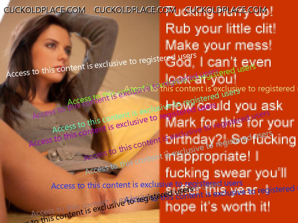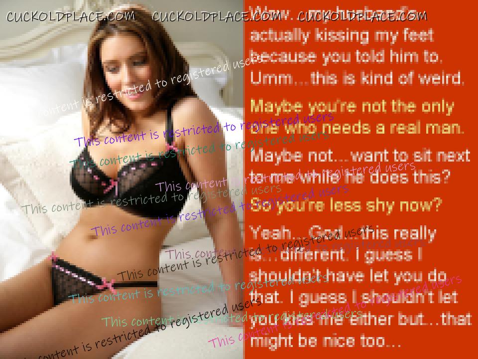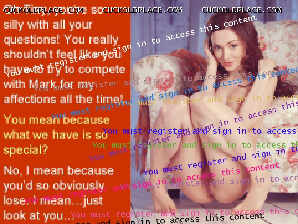 robyn137: I know some people on here think it's crazy but I really wish Anne would find someone special, someone she could slowly fall in love with, someone who she could replace me with. The thought of her leaving me, taking everything, leaving me completely screwed and celibate for the rest of my life is the biggest turn on ever. I would do anything to make it happen. Part of me wishes she had chosen to have Mark's baby instead of mine. I'm sure some people do, Paul. But some of us really relate as well - you are not alone in this. I have the exact same wish for my wife and my life. Like you, I've had trouble with courage sometimes. And like you, I have often wished it would go faster as my wife grew into sharing the dream and regretted opportunities lost. But that is life - what happens instead of what you meant to have happen. I have learned, as you have, to find the strength to keep pushing on towards the dream no matter how crazy, contradictory, or self-destructive others find it. Keep the faith, my friend. On another topic: It is so exciting to see you back in the saddle with captions! Thank you for sharing you truly impressive talents with us. I loved " Leading Her," " Not Invited," " Instructions," and " Happy" I also really enjoyed the themes in " No More Touching," " One Minute," and " She Likes It." You are both generous and ingenious. Pantalone, Wittol, oblate, abnegator, fellator, pathic, irrumatiophile,fop, epicene, cotquean, skivvy, thrall, and pilgarlic.
