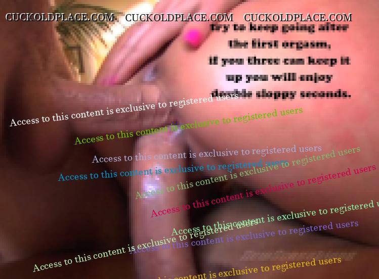Two cocks stuffed into a happy wife's cunt ! a wife who needs super hot sex just to come . one big wet penis going all the way up her love tunnel, another about to fill her up good. both men loaded with hot sperm ! And one husband, in the corner watching everything, trying not to cry out with joy. hoping they will fuck her for hours, wanting to see them inject sperm into her, wanting them to ravish her , hoping to see her come over and over and over, hoping she will grow even sluttier and harder to control ! After they are finished with her, he will be torn between wanting to take her home, kiss her gently and tuck her into their bed, or walking out by himself and telling her to spend the weekend with the two men and all there friends. In the end he cannot ignore the needs of his promiscuous lady, and as he leaves he whispers to her , ' come home dirty if you want ' Wife Share one to two