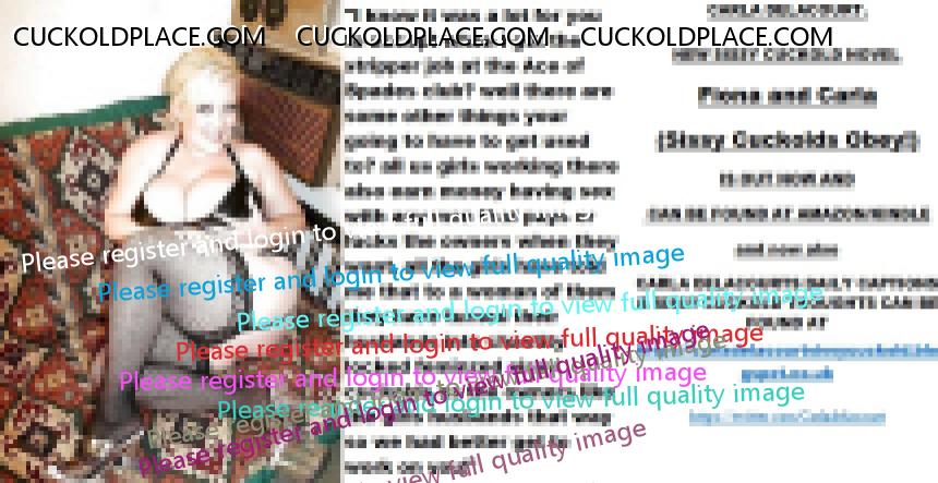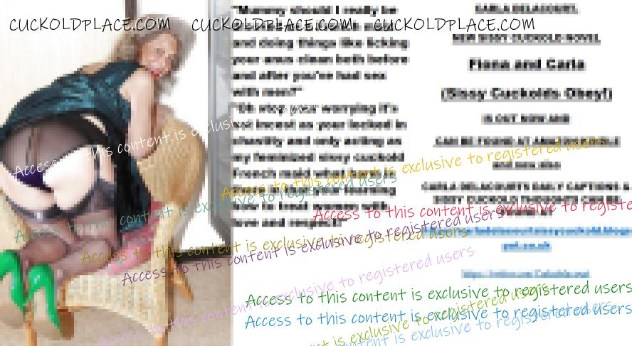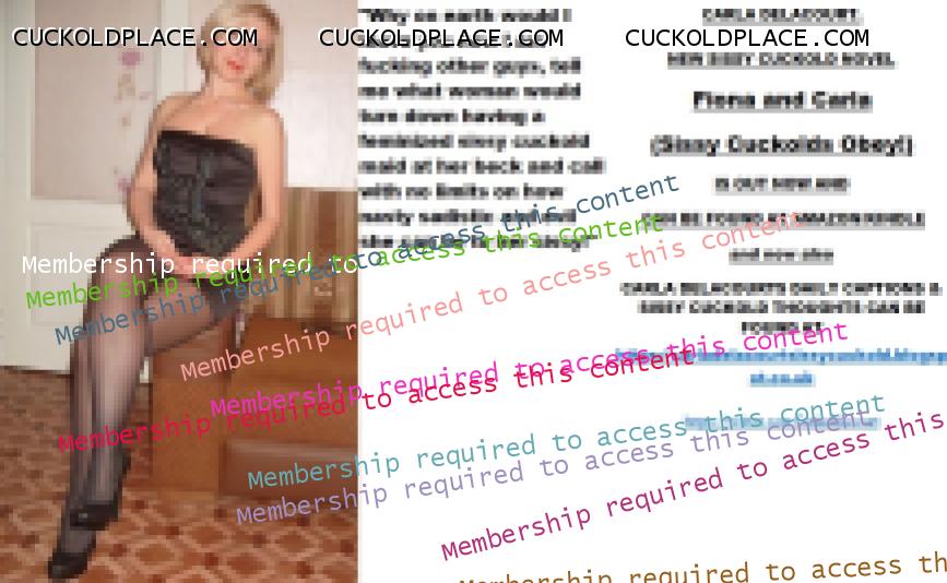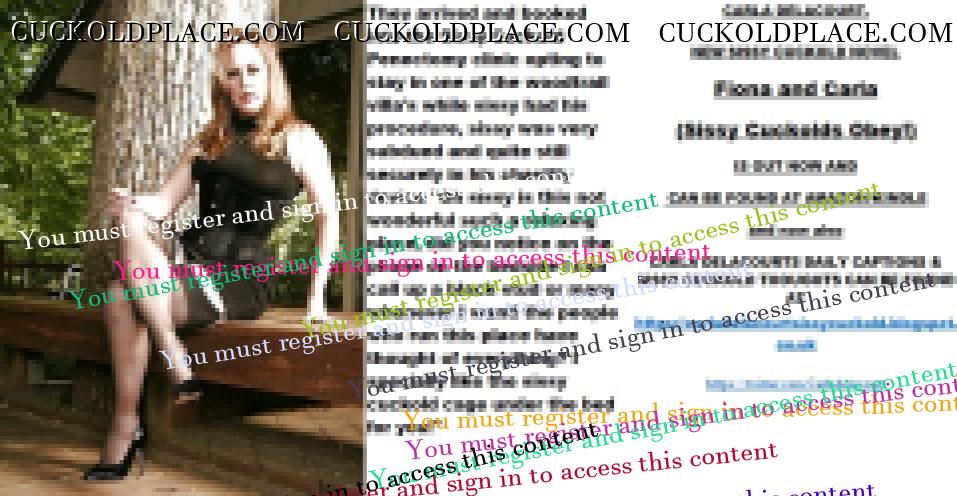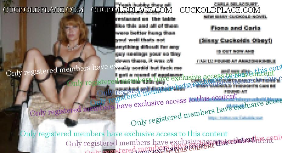 Yet more CARLA DELACOURT. NEW SISSY CUCKOLD NOVEL Fiona and Carla (Sissy Cuckolds Obey!) IS OUT NOW AND CAN BE FOUND AT AMAZON/KINDLE and now also CARLA DELACOURTS DAILY CAPTIONS & SISSY CUCKOLD THOUGHTS CAN BE FOUND AT The hyperlink is visible to registered members only!The hyperlink is visible to registered members only!