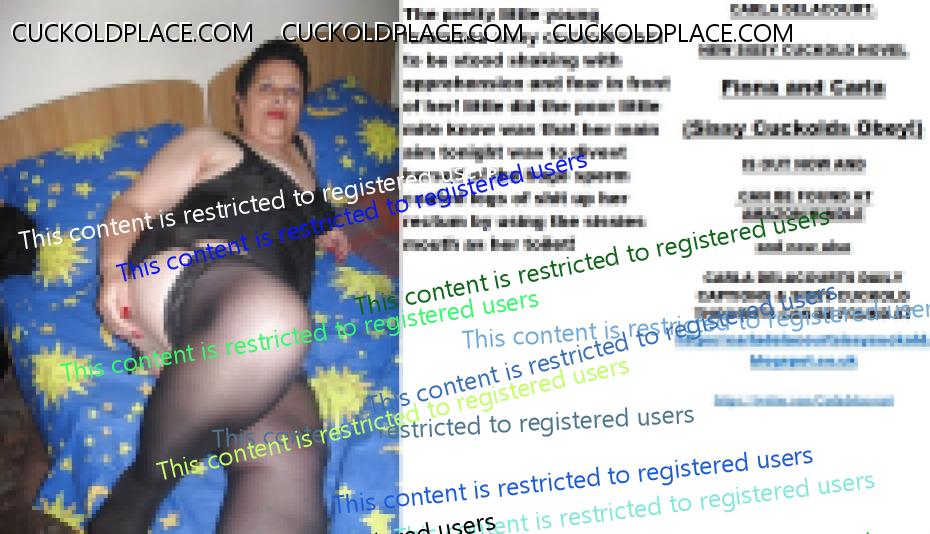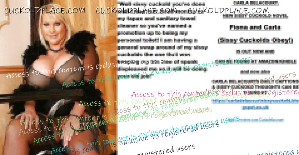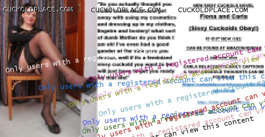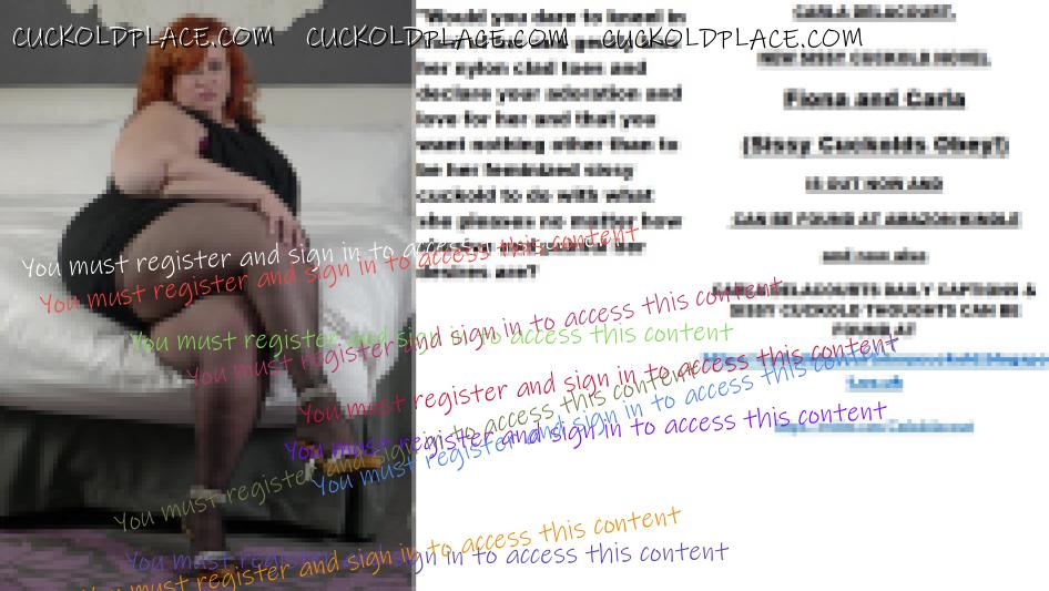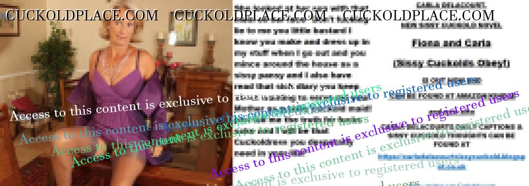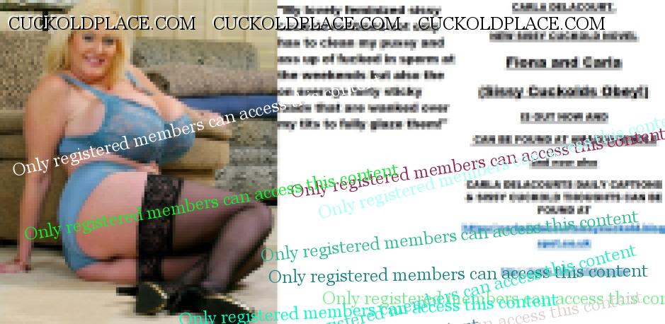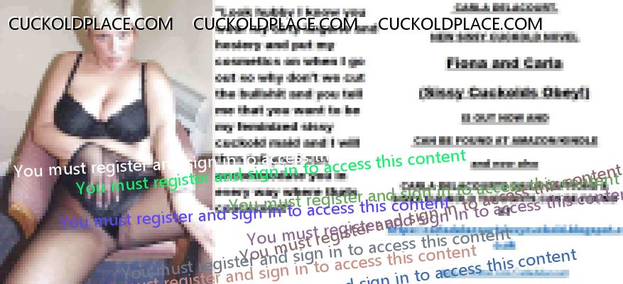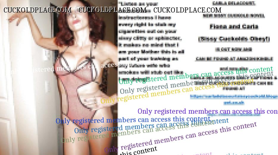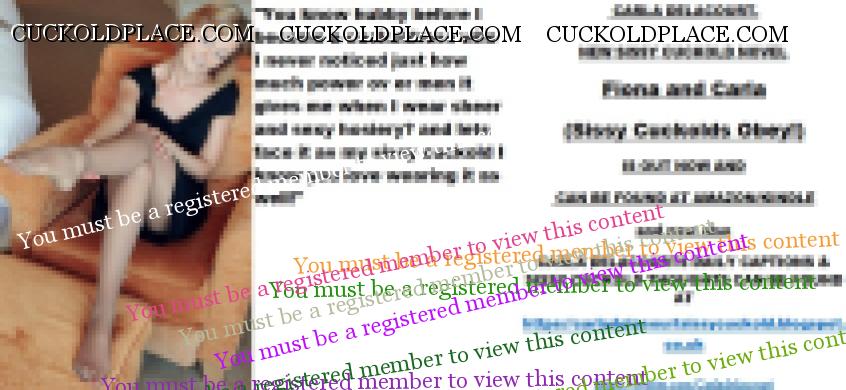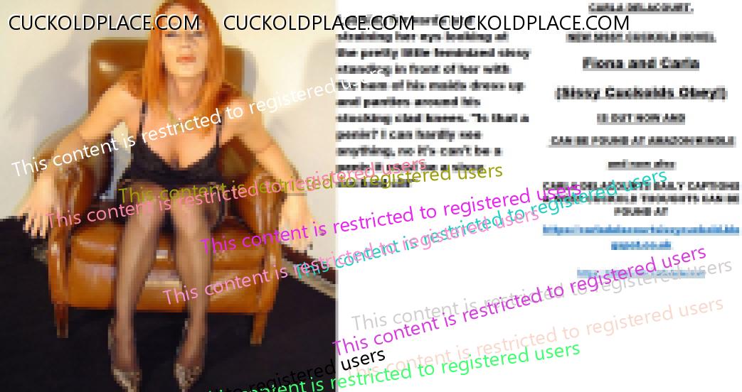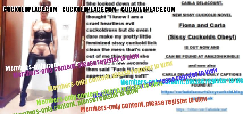 Afternoon all CARLA DELACOURT. NEW SISSY CUCKOLD NOVEL Fiona and Carla (Sissy Cuckolds Obey!) IS OUT NOW AND CAN BE FOUND AT AMAZON/KINDLE and now also CARLA DELACOURTS DAILY CAPTIONS & SISSY CUCKOLD THOUGHTS CAN BE FOUND AT The hyperlink is visible to registered members only!The hyperlink is visible to registered members only!