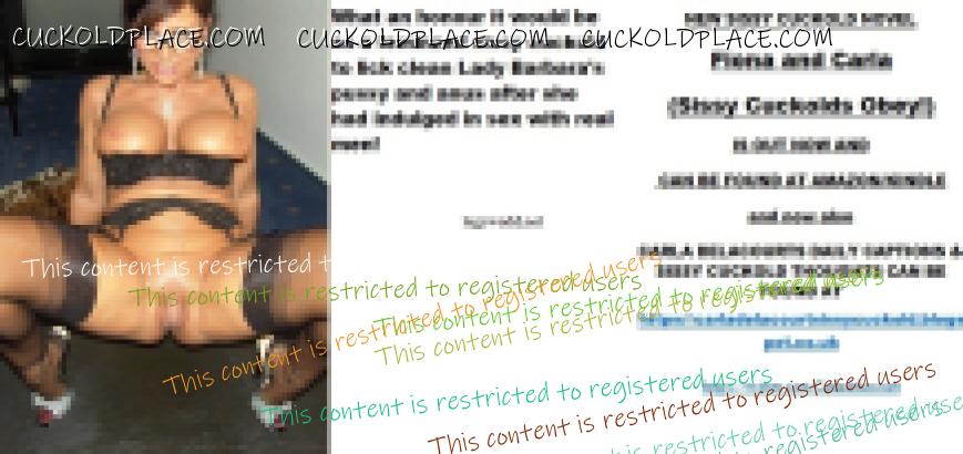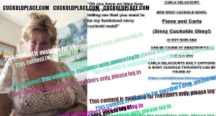 Morning all CARLA DELACOURT. NEW SISSY CUCKOLD NOVEL Fiona and Carla (Sissy Cuckolds Obey!) IS OUT NOW AND CAN BE FOUND AT AMAZON/KINDLE and now also CARLA DELACOURTS DAILY CAPTIONS & SISSY CUCKOLD THOUGHTS CAN BE FOUND AT The hyperlink is visible to registered members only!The hyperlink is visible to registered members only!