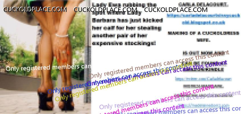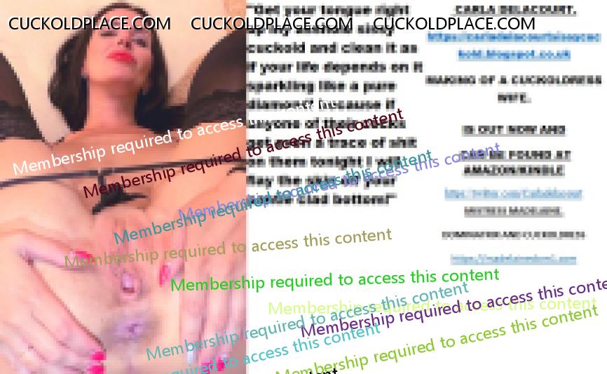 Morning all CARLA DELACOURT. The hyperlink is visible to registered members only!MAKING OF A CUCKOLDRESS WIFE. IS OUT NOW AND CAN BE FOUND AT AMAZON/KINDLE The hyperlink is visible to registered members only!MISTRESS MADELAINE. DOMINATRIX AND CUCKOLDRESS The hyperlink is visible to registered members only!