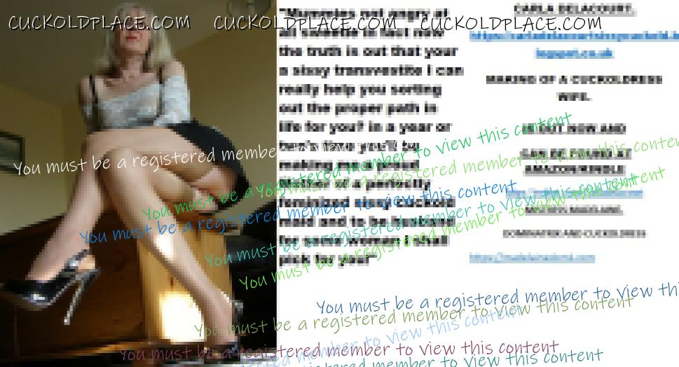 Morning all CARLA DELACOURT. The hyperlink is visible to registered members only!MAKING OF A CUCKOLDRESS WIFE. IS OUT NOW AND CAN BE FOUND AT AMAZON/KINDLE The hyperlink is visible to registered members only!