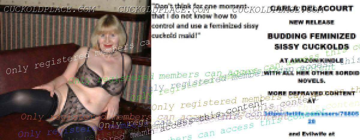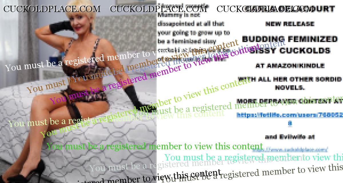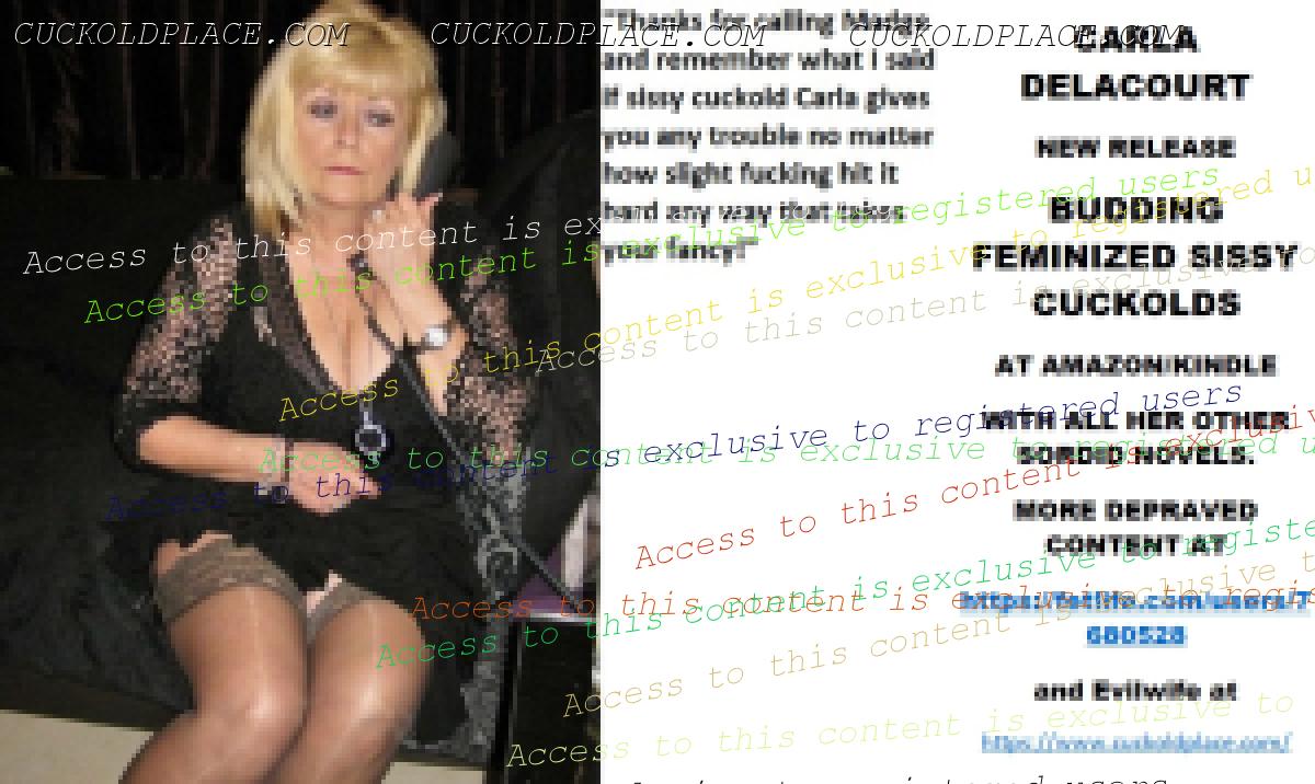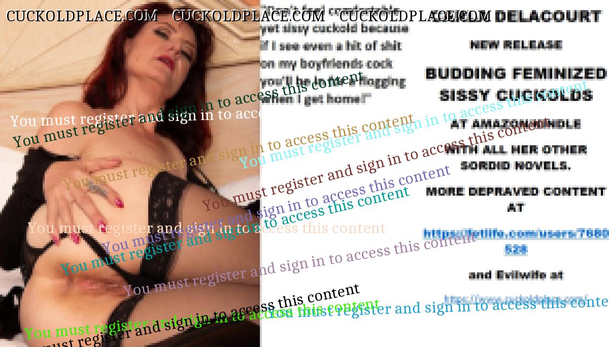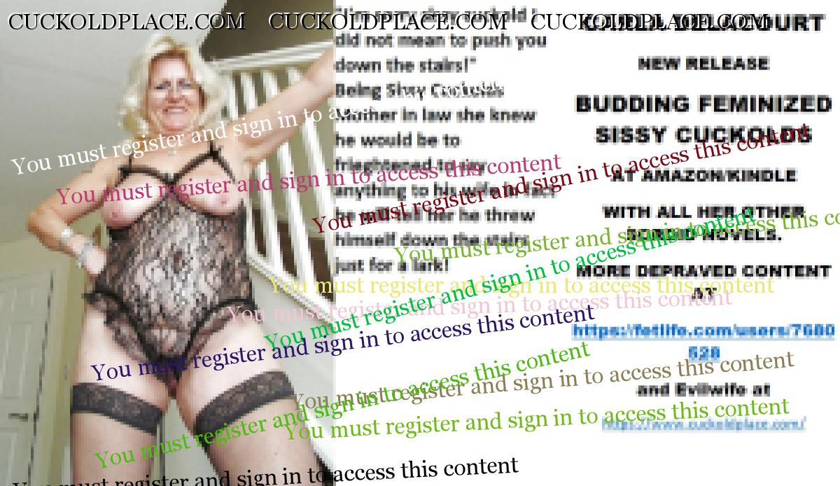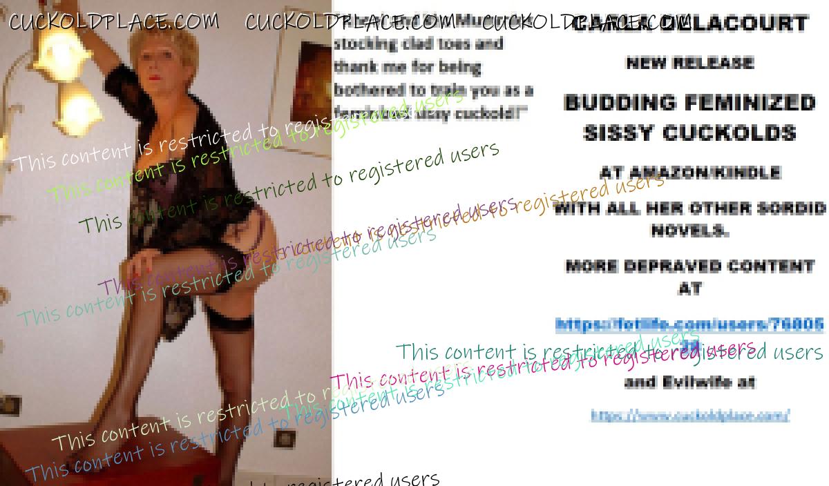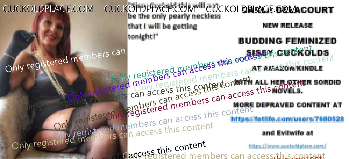 Morning all CARLA DELACOURT NEW RELEASE BUDDING FEMINIZED SISSY CUCKOLDS AT AMAZON/KINDLE WITH ALL HER OTHER SORDID NOVELS. MORE DEPRAVED CONTENT AT The hyperlink is visible to registered members only!and Evilwife at https://www.cuckoldplace.com/