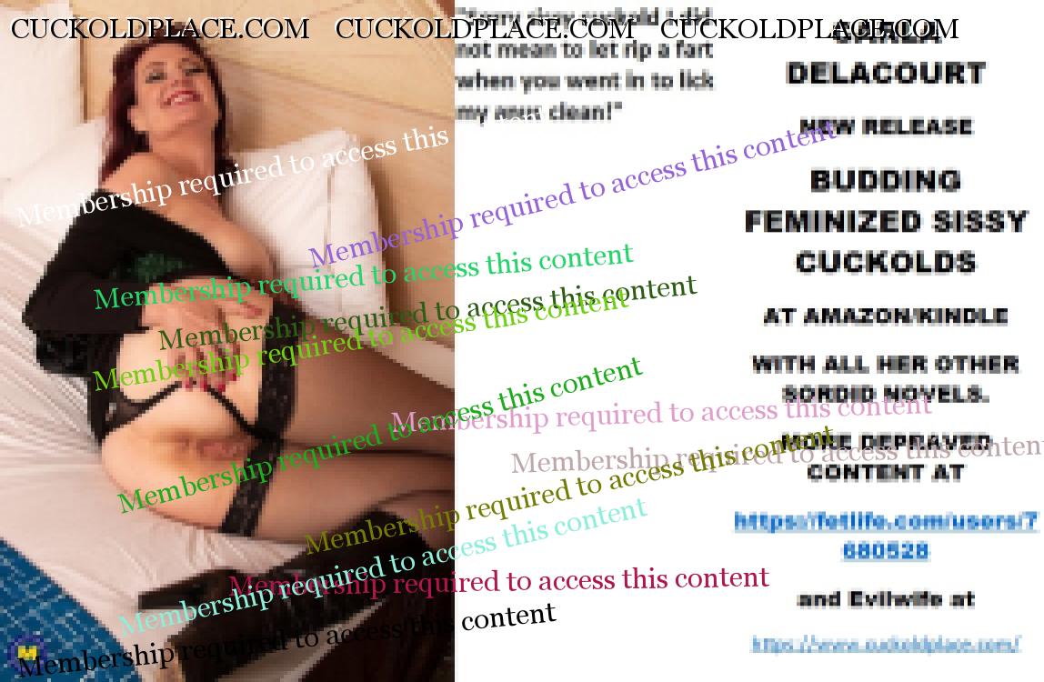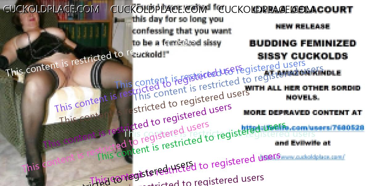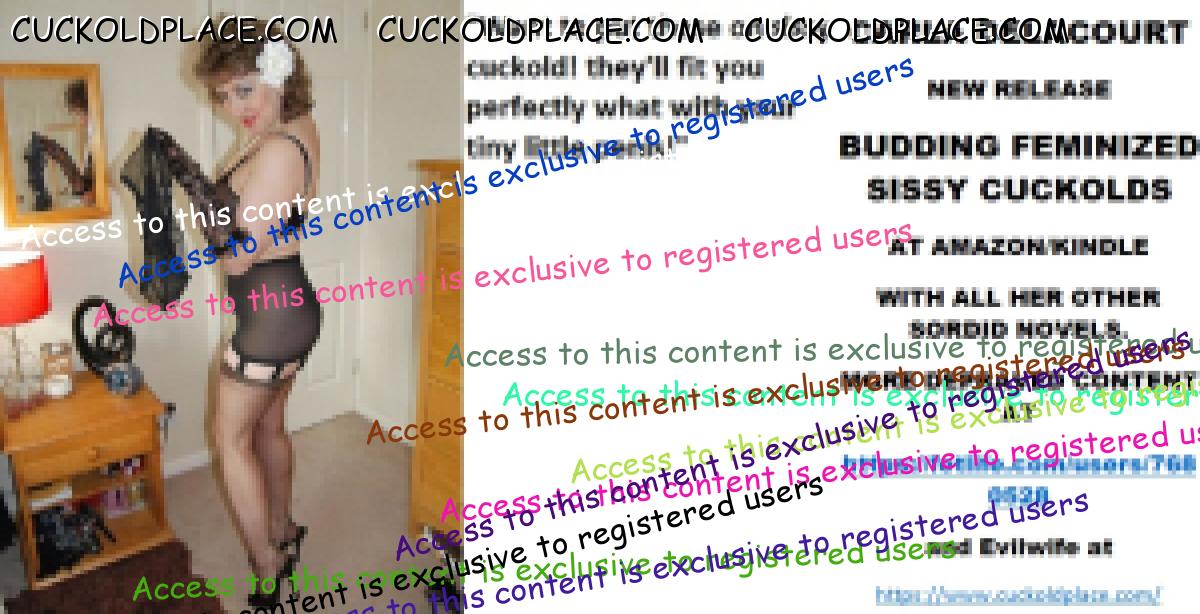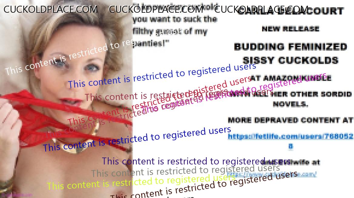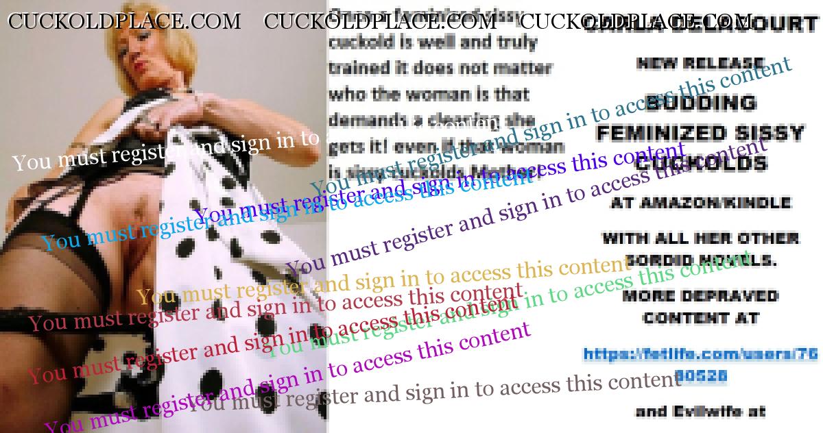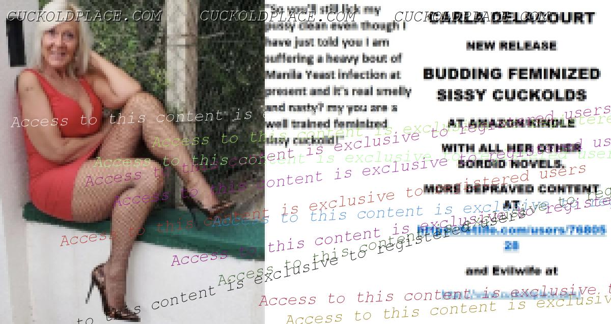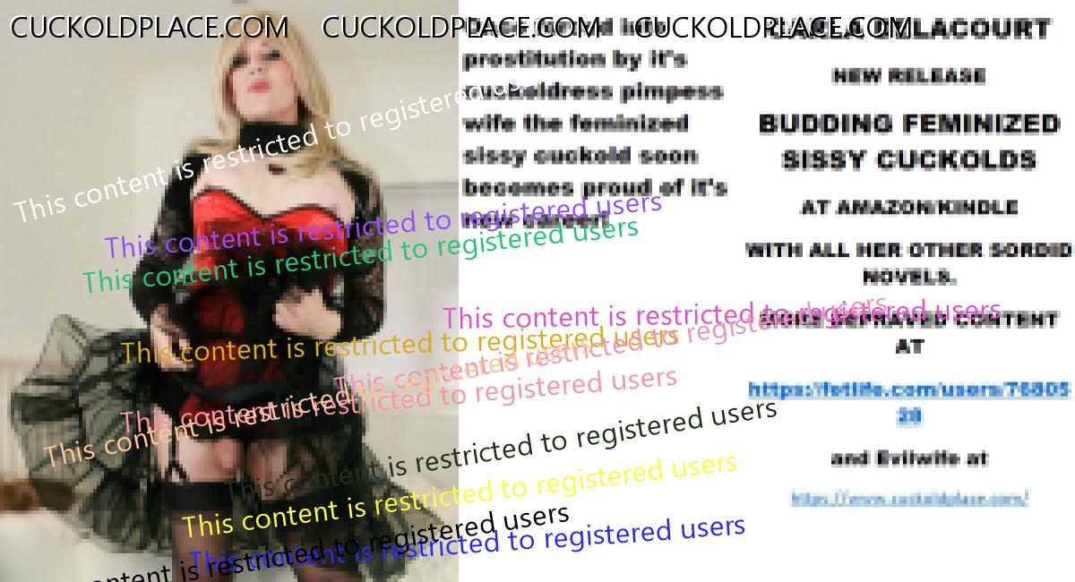 Morning all CARLA DELACOURT NEW RELEASE BUDDING FEMINIZED SISSY CUCKOLDS AT AMAZON/KINDLE WITH ALL HER OTHER SORDID NOVELS. MORE DEPRAVED CONTENT AT The hyperlink is visible to registered members only!and Evilwife at https://www.cuckoldplace.com/
