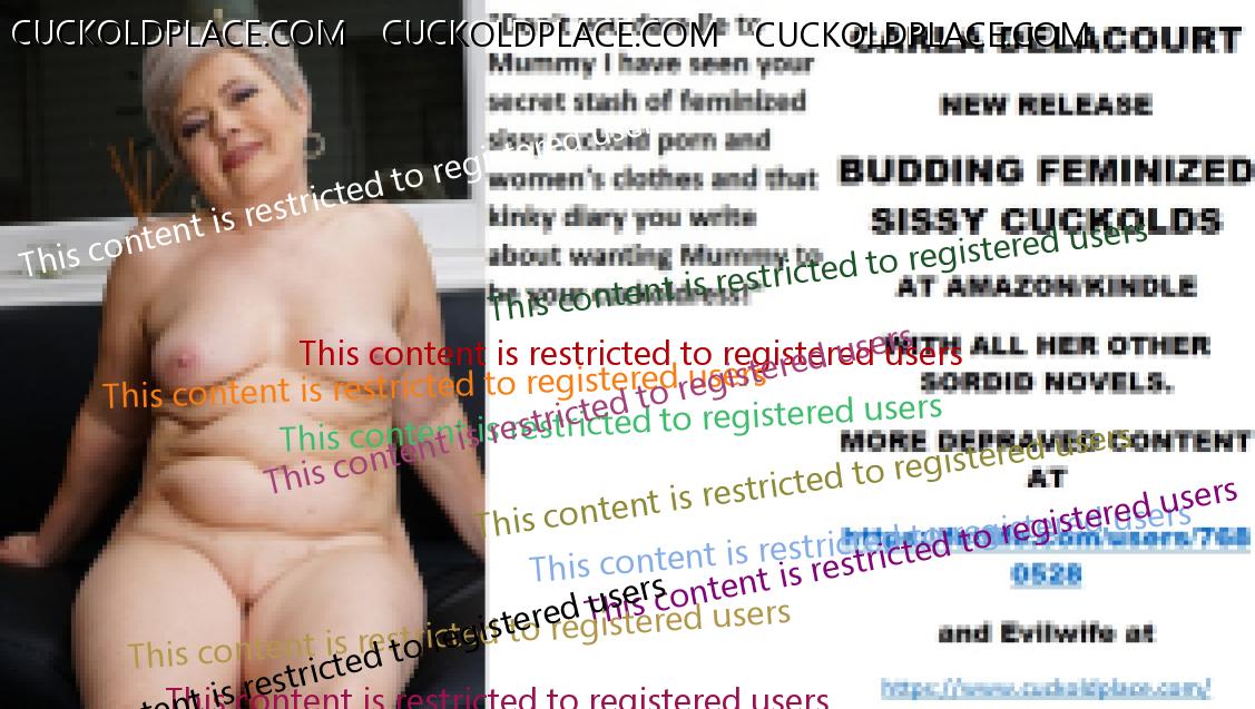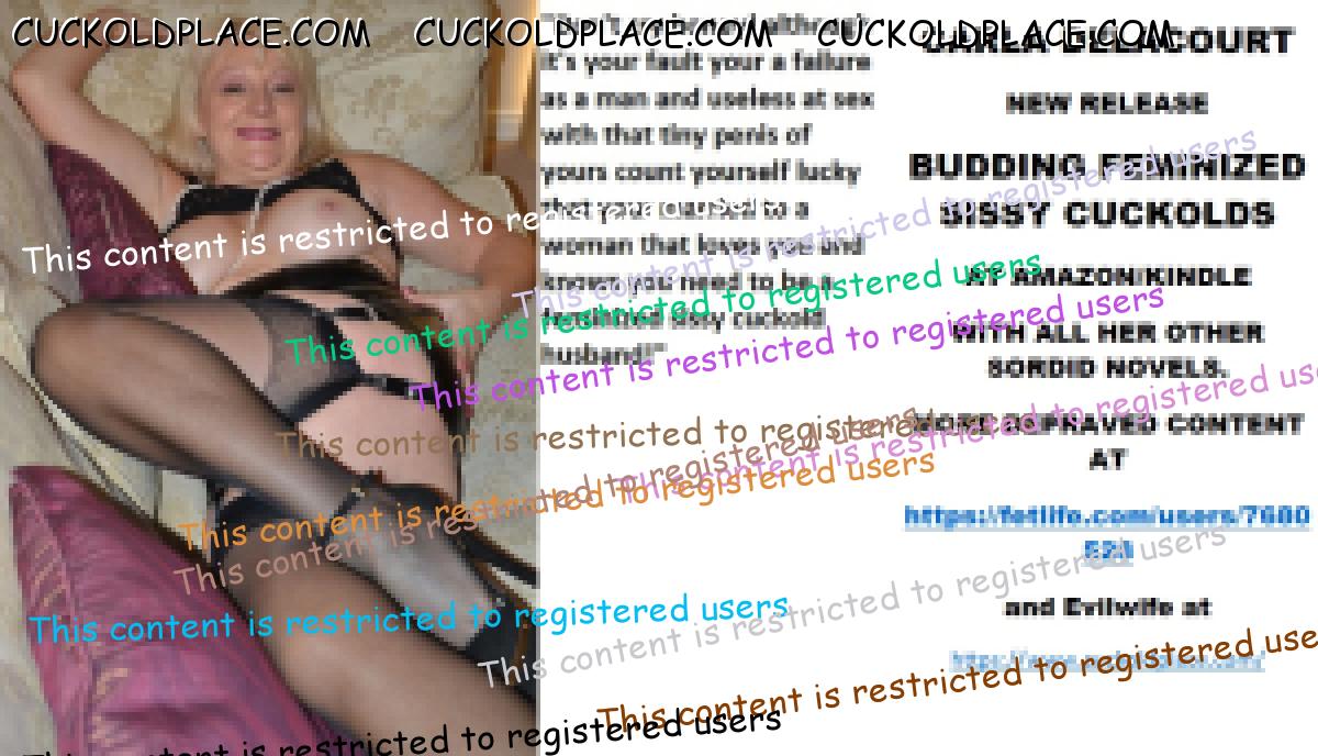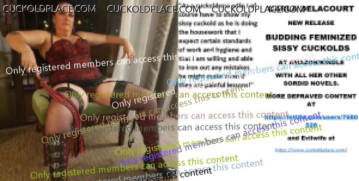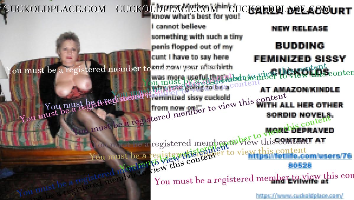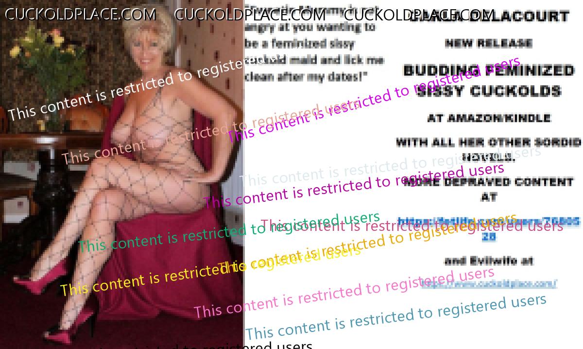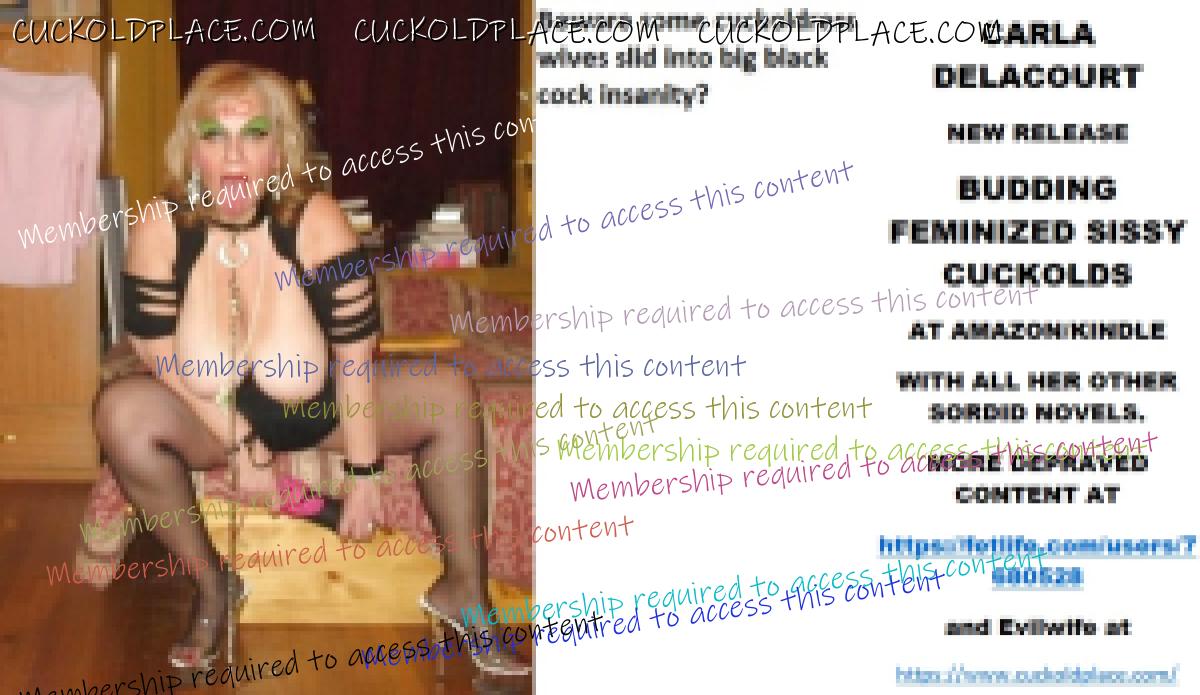 Morning all CARLA DELACOURT NEW RELEASE BUDDING FEMINIZED SISSY CUCKOLDS AT AMAZON/KINDLE WITH ALL HER OTHER SORDID NOVELS. MORE DEPRAVED CONTENT AT The hyperlink is visible to registered members only!and Evilwife at https://www.cuckoldplace.com/