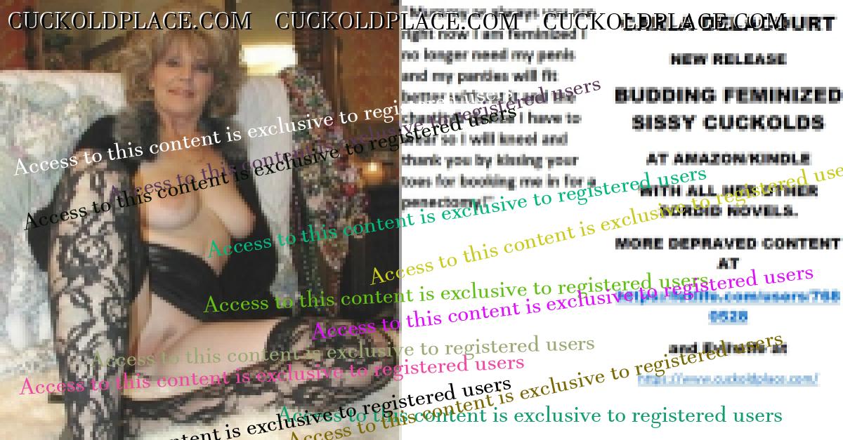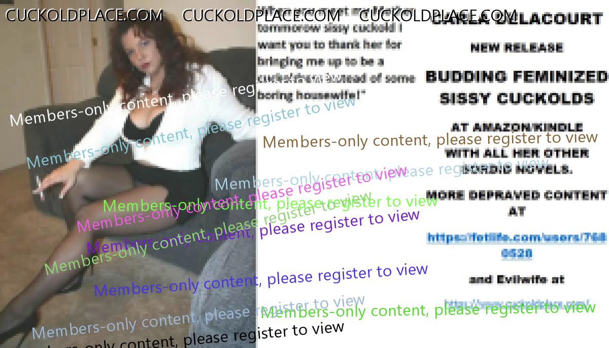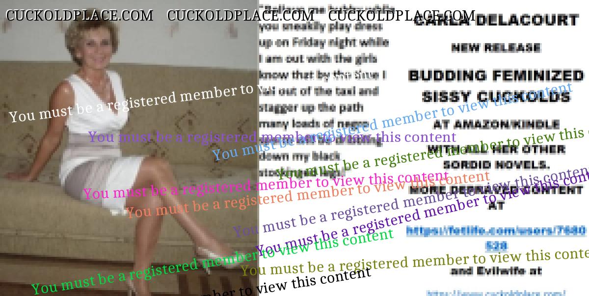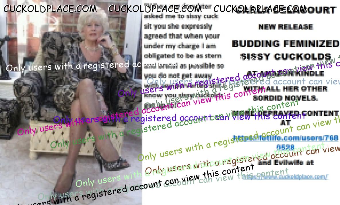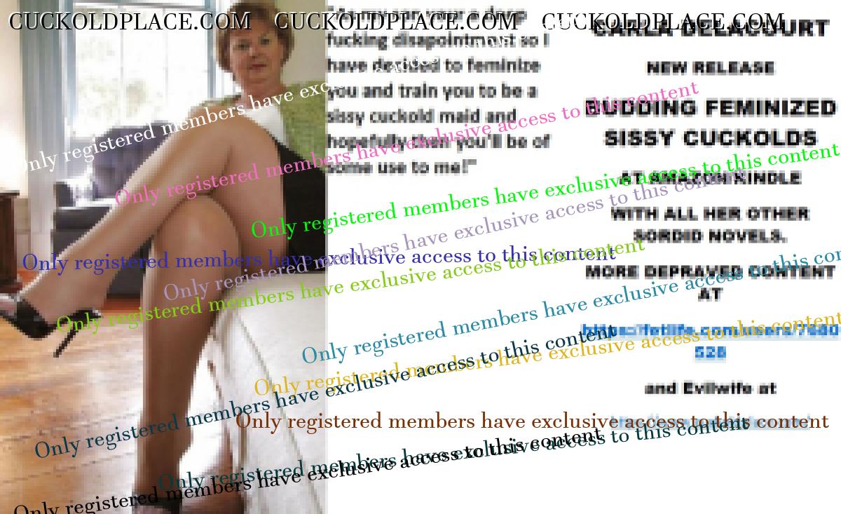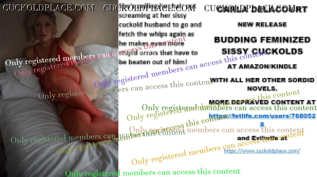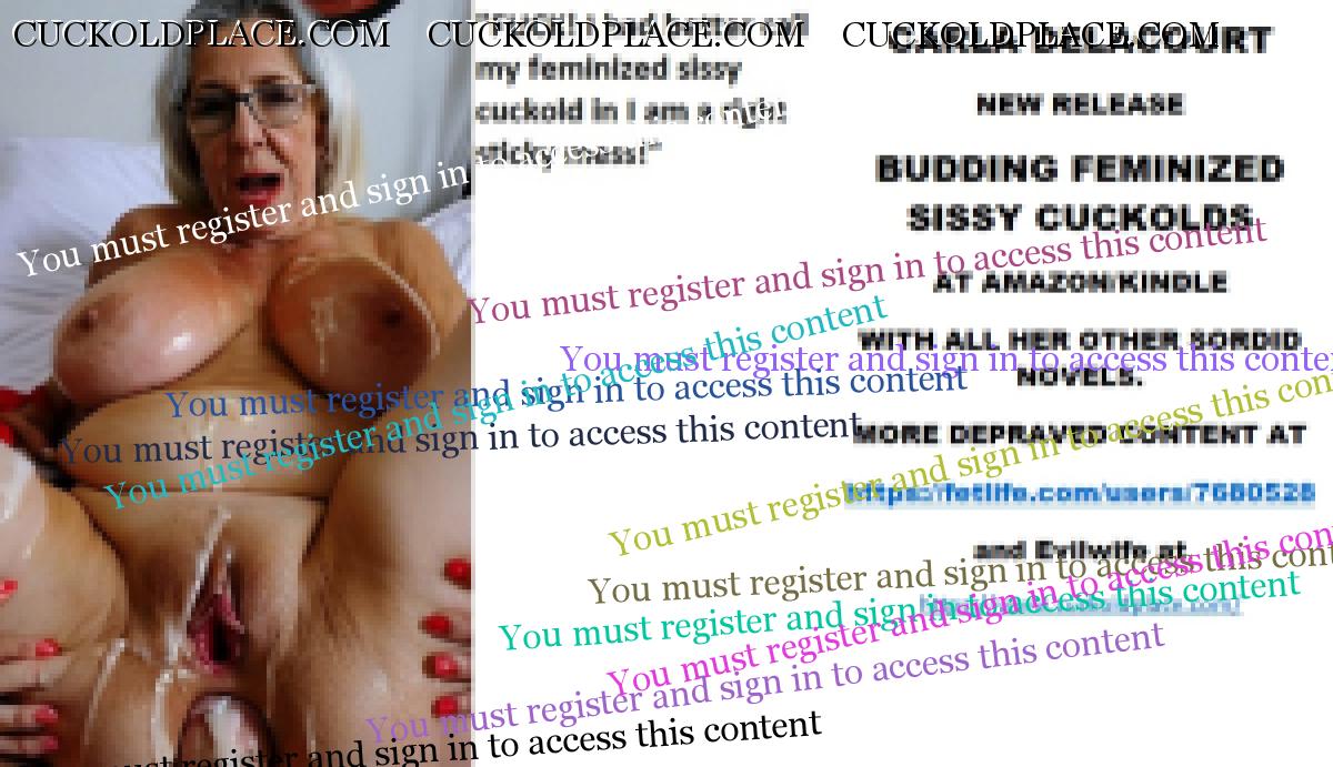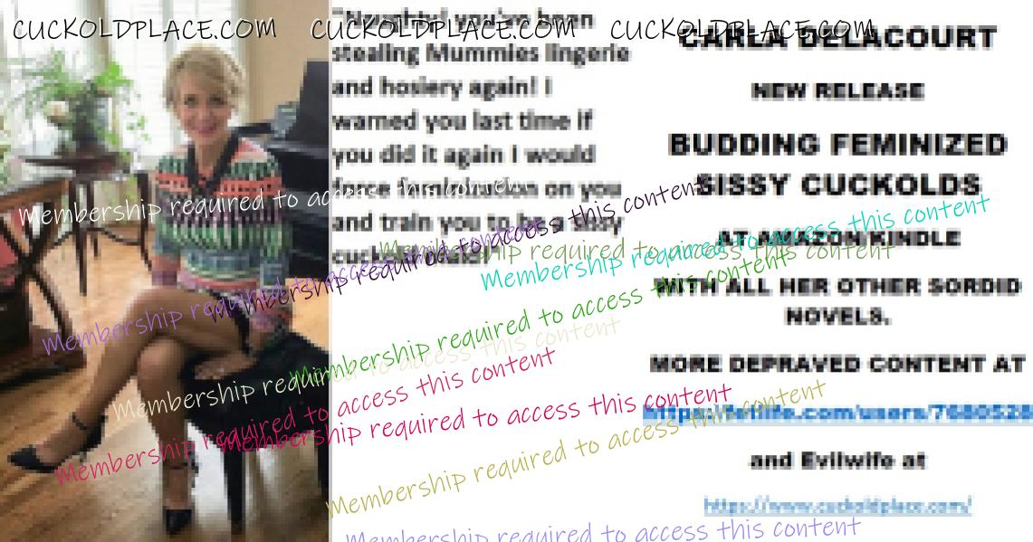 Morning all CARLA DELACOURT NEW RELEASE BUDDING FEMINIZED SISSY CUCKOLDS AT AMAZON/KINDLE WITH ALL HER OTHER SORDID NOVELS. MORE DEPRAVED CONTENT AT The hyperlink is visible to registered members only!and Evilwife at https://www.cuckoldplace.com/