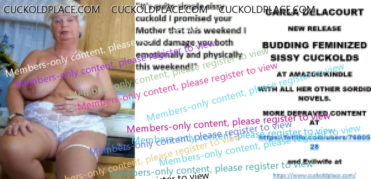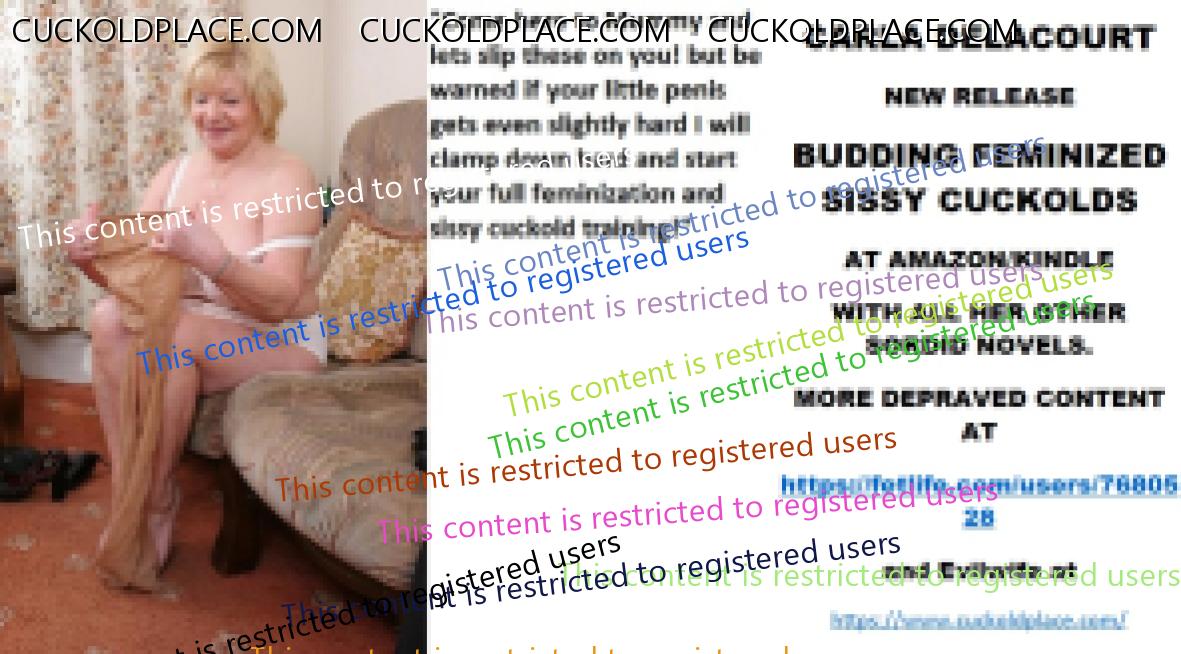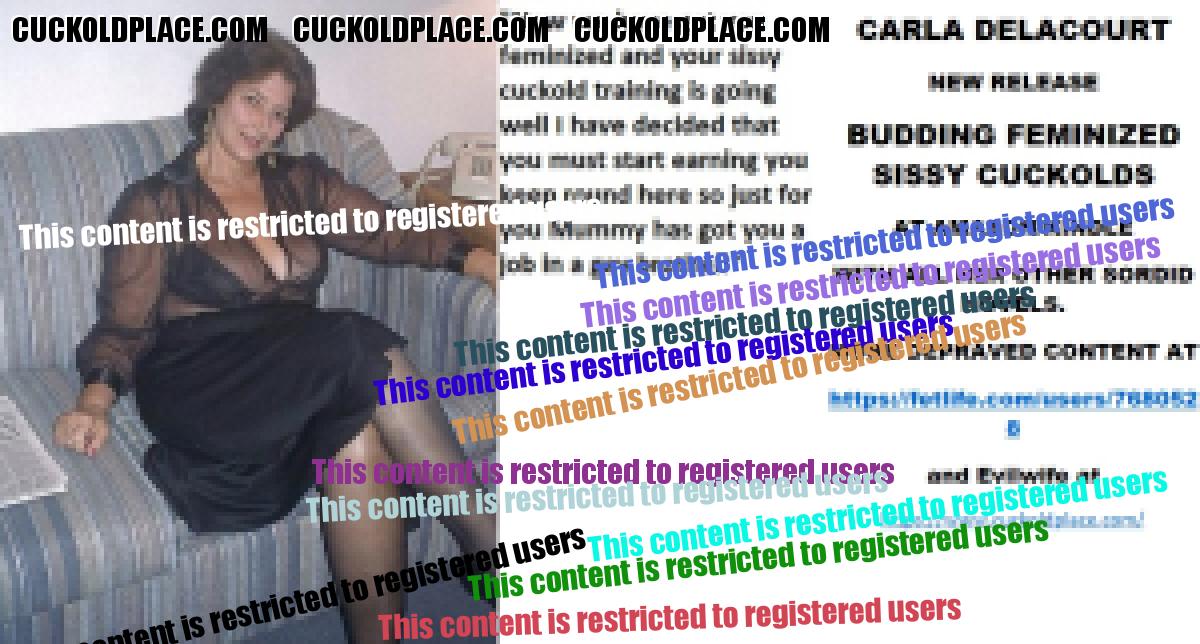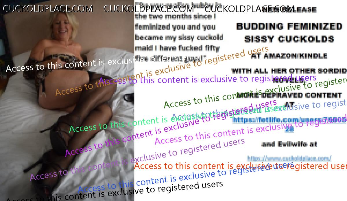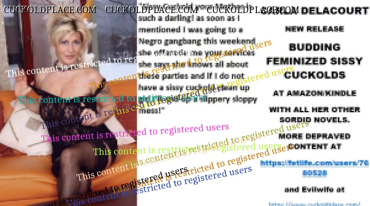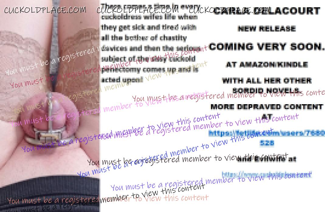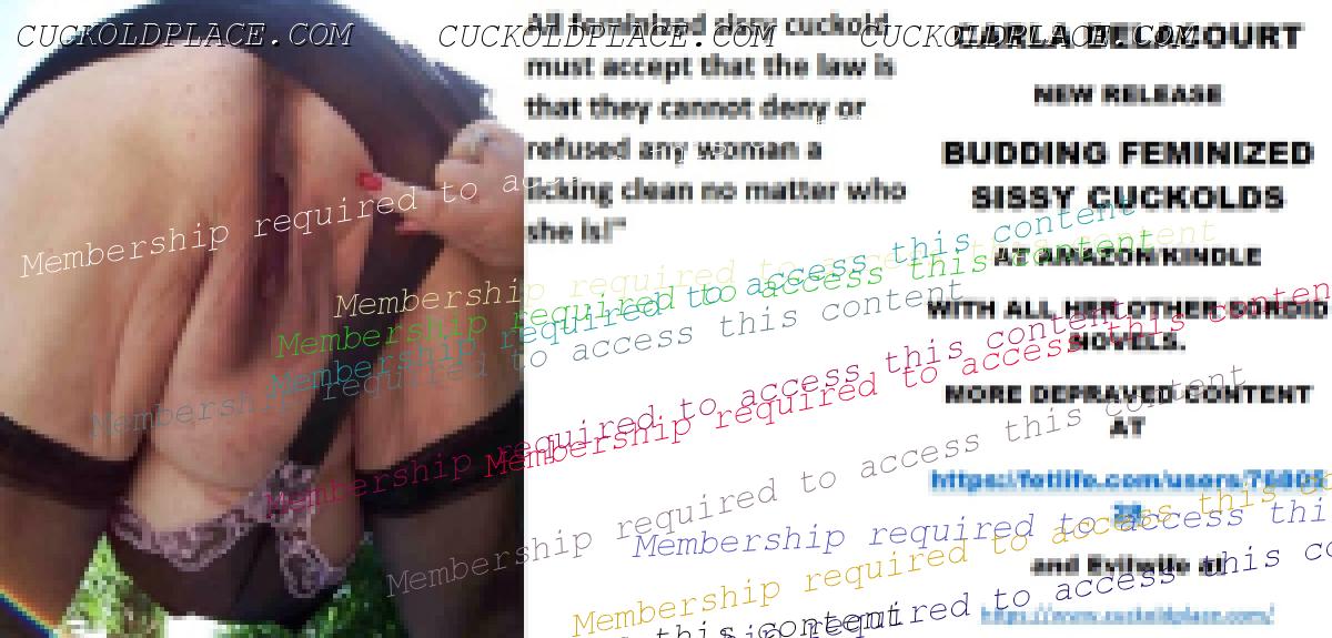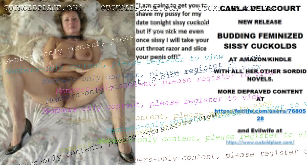 Morning all CARLA DELACOURT NEW RELEASE BUDDING FEMINIZED SISSY CUCKOLDS AT AMAZON/KINDLE WITH ALL HER OTHER SORDID NOVELS. MORE DEPRAVED CONTENT AT The hyperlink is visible to registered members only!and Evilwife at https://www.cuckoldplace.com/