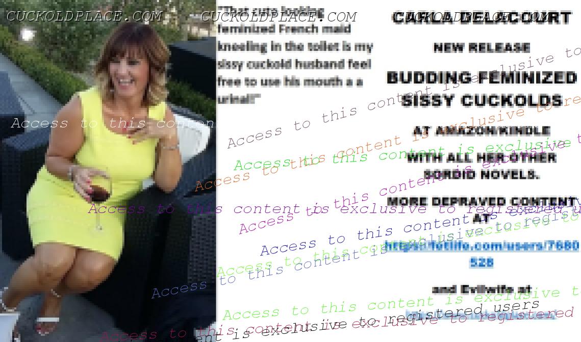 And even more to go CARLA DELACOURT NEW RELEASE BUDDING FEMINIZED SISSY CUCKOLDS AT AMAZON/KINDLE WITH ALL HER OTHER SORDID NOVELS. MORE DEPRAVED CONTENT AT The hyperlink is visible to registered members only!and Evilwife at https://www.cuckoldplace.com/