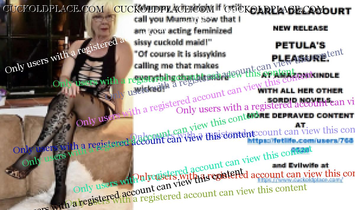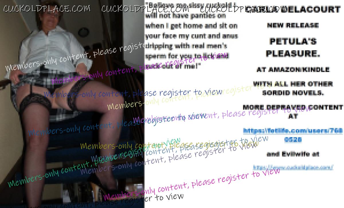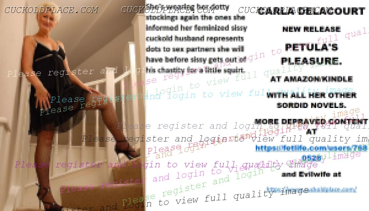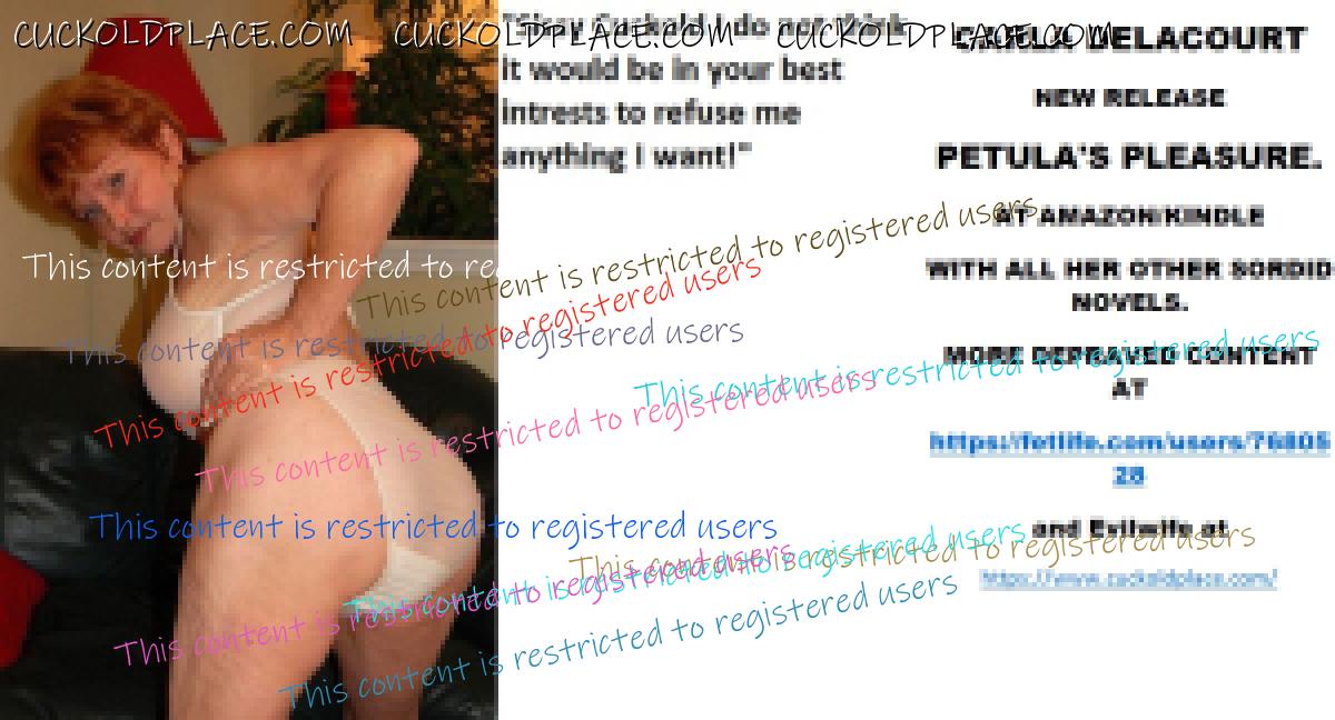 Bobbye thank you for kind remarks xxx CARLA DELACOURT NEW RELEASE PETULA'S PLEASURE. AT AMAZON/KINDLE WITH ALL HER OTHER SORDID NOVELS. MORE DEPRAVED CONTENT AT The hyperlink is visible to registered members only!and Evilwife at https://www.cuckoldplace.com/