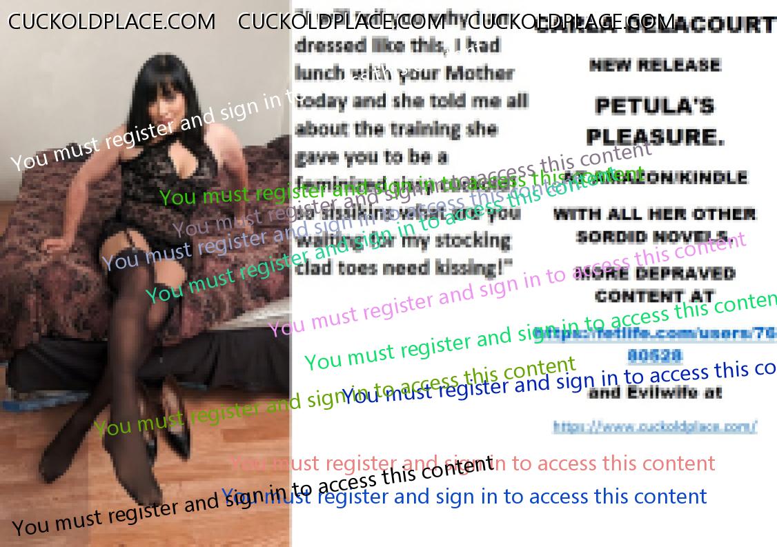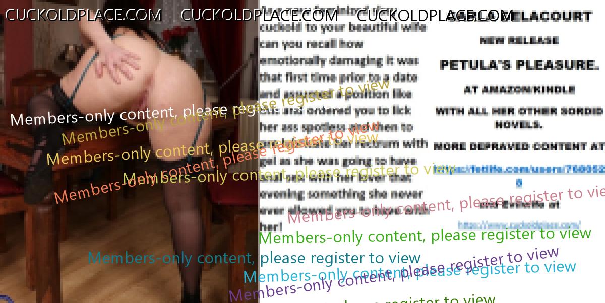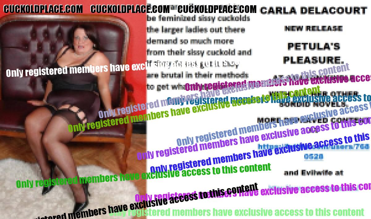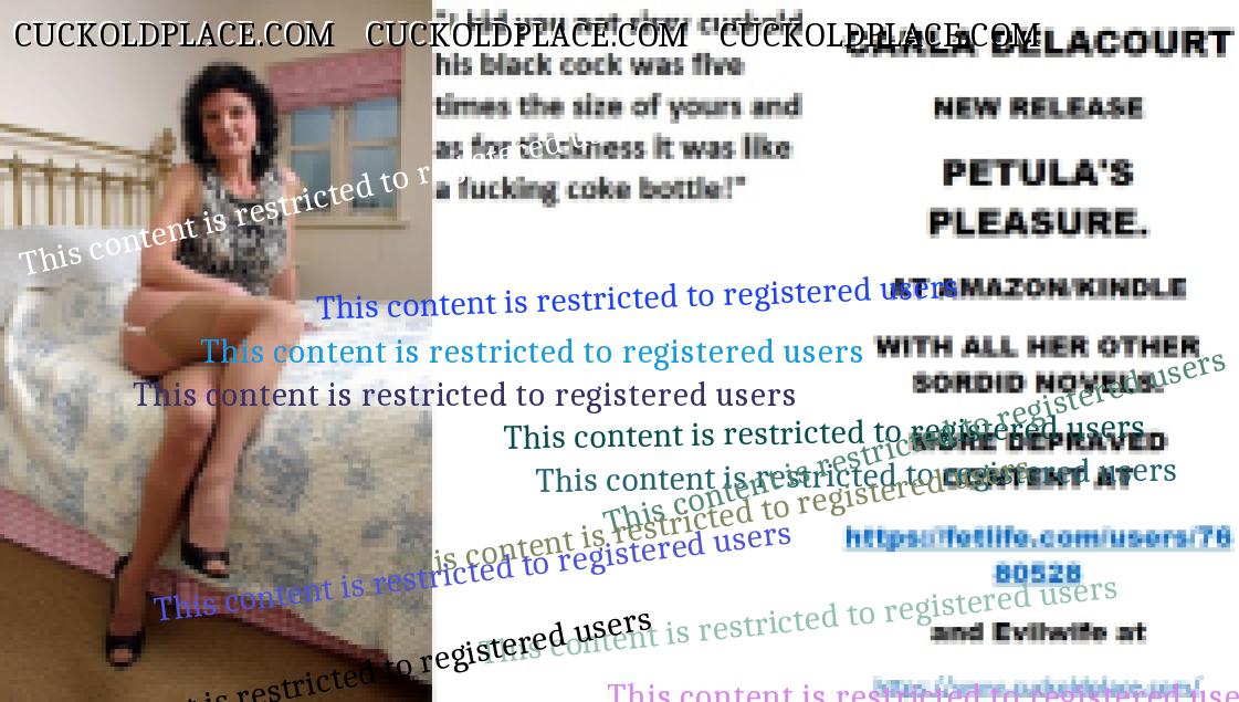 Bobbye thank you for kind remarks xxx CARLA DELACOURT NEW RELEASE PETULA'S PLEASURE. AT AMAZON/KINDLE WITH ALL HER OTHER SORDID NOVELS. MORE DEPRAVED CONTENT AT The hyperlink is visible to registered members only!and Evilwife at https://www.cuckoldplace.com/