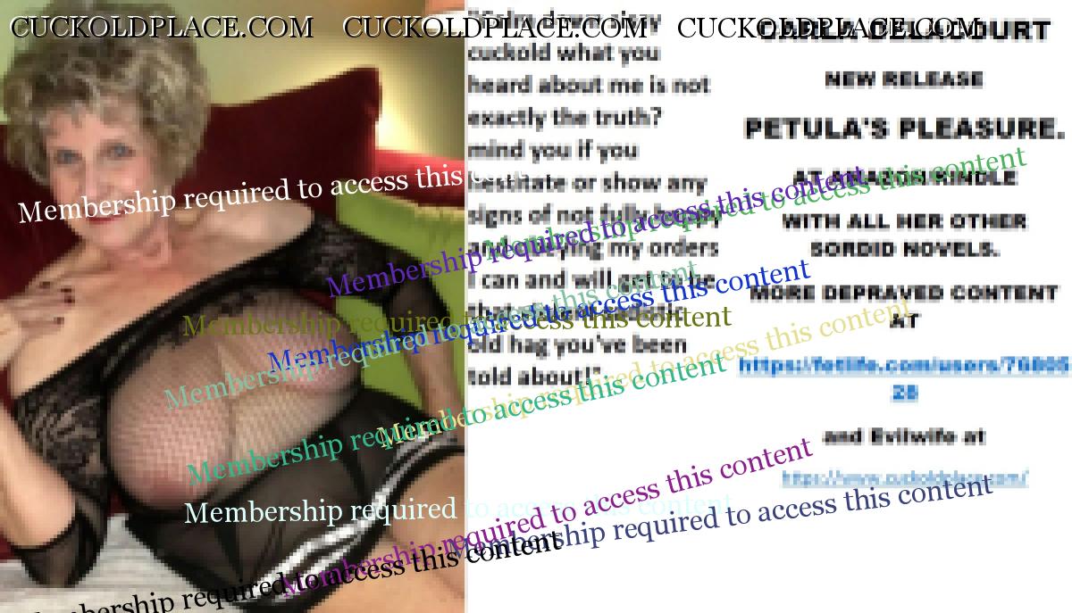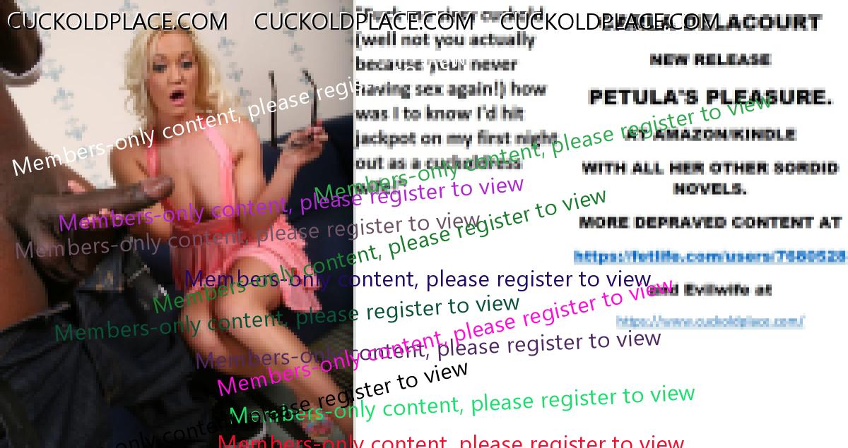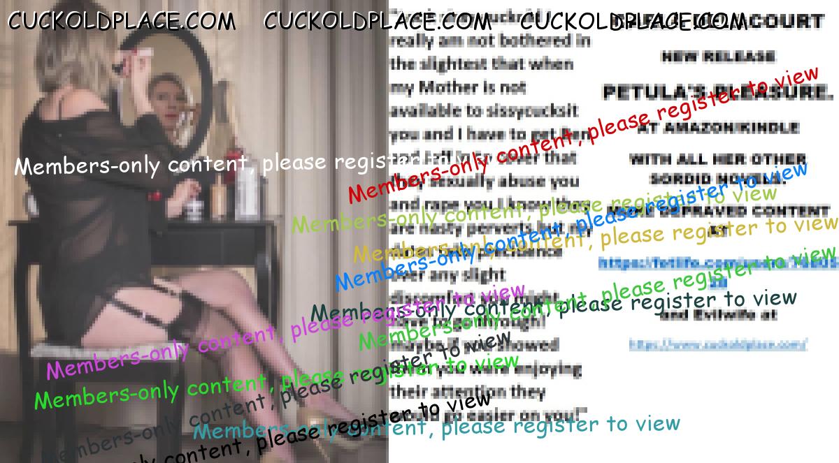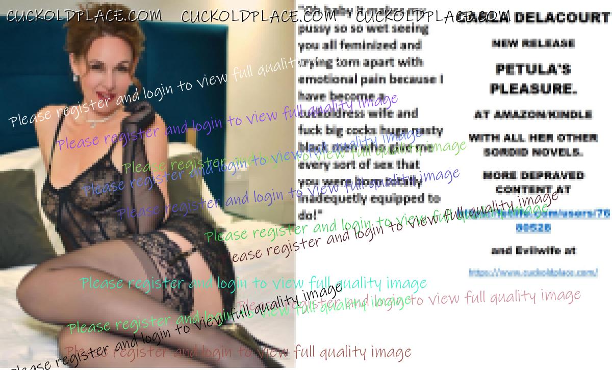 Afternoon all CARLA DELACOURT NEW RELEASE PETULA'S PLEASURE. AT AMAZON/KINDLE WITH ALL HER OTHER SORDID NOVELS. MORE DEPRAVED CONTENT AT The hyperlink is visible to registered members only!and Evilwife at https://www.cuckoldplace.com/