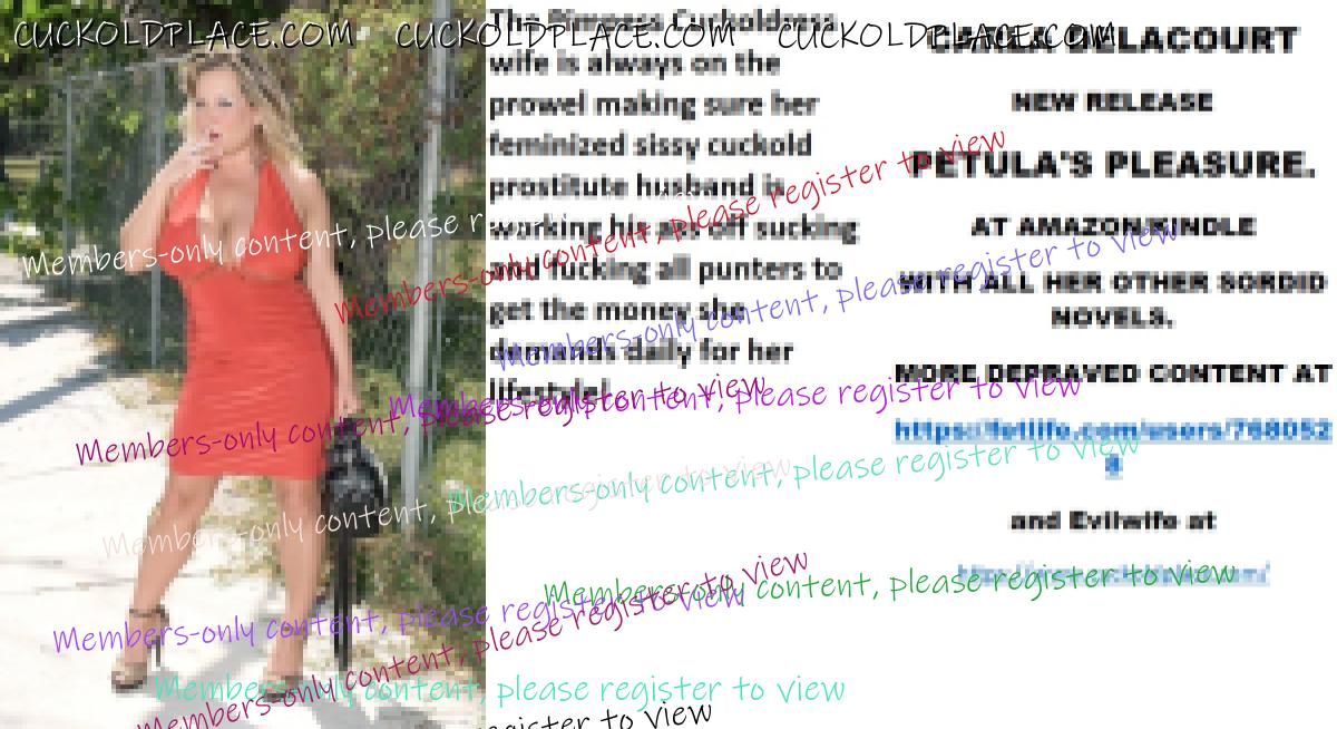 And more CARLA DELACOURT NEW RELEASE PETULA'S PLEASURE. AT AMAZON/KINDLE WITH ALL HER OTHER SORDID NOVELS. MORE DEPRAVED CONTENT AT The hyperlink is visible to registered members only!and Evilwife at https://www.cuckoldplace.com/