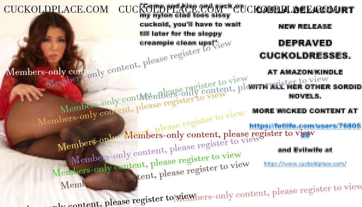 Morning all And I think all of us would suck on her ass Bobbeye CARLA DELACOURT NEW RELEASE DEPRAVED CUCKOLDRESSES. AT AMAZON/KINDLE WITH ALL HER OTHER SORDID NOVELS. MORE WICKED CONTENT AT The hyperlink is visible to registered members only!and Evilwife at https://www.cuckoldplace.com/